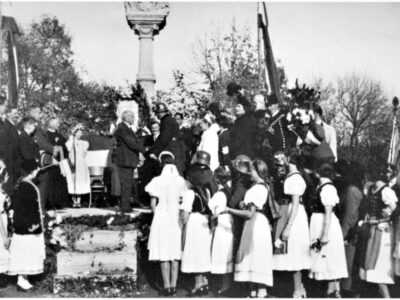 A Felvidék felszabadulásának emlékére készült képeslap Rozsnyóról, főtér
