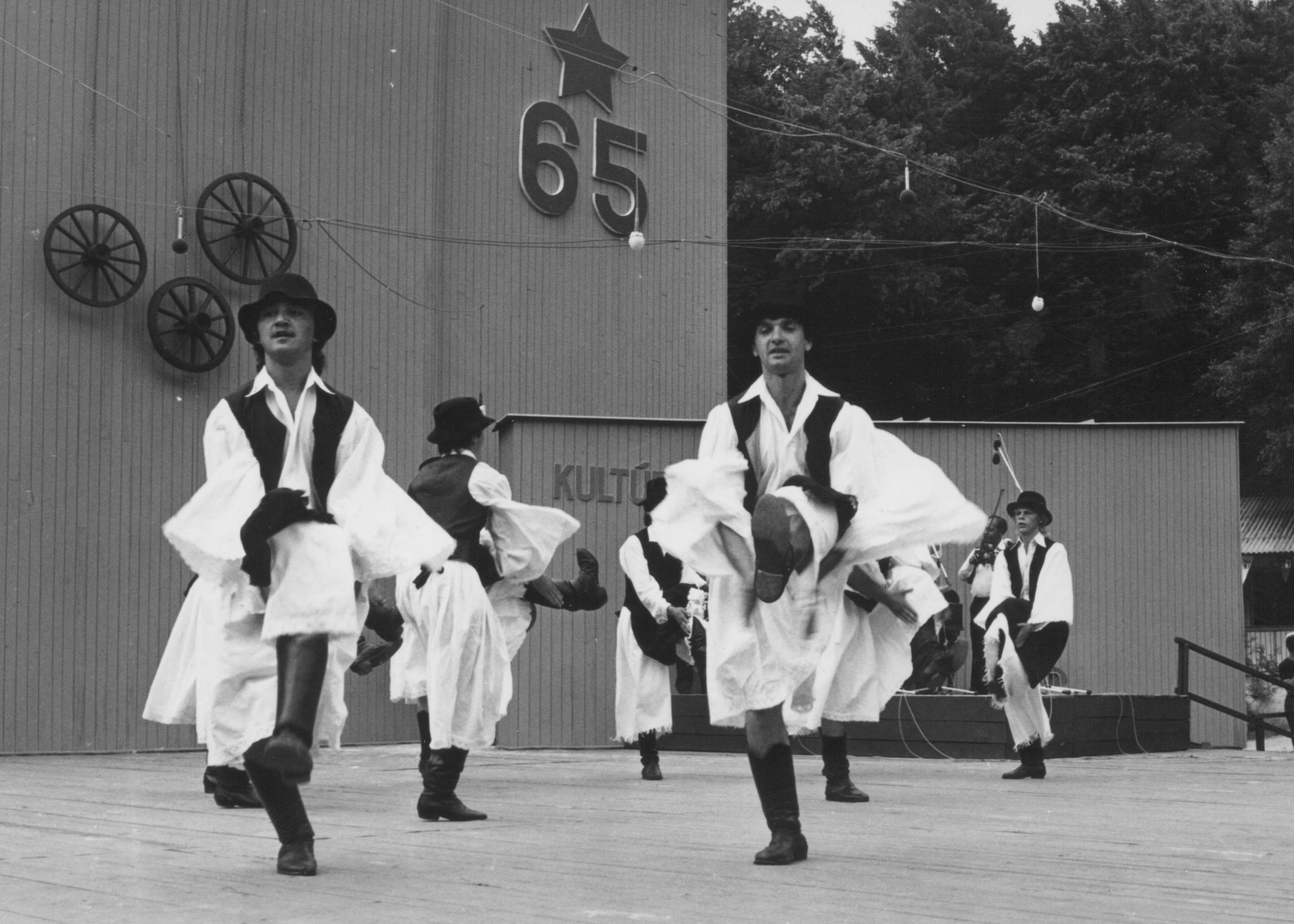 A Nagyidai Helyi Művelődési Otthon Ilosvai Táncegyüttesének és a CSEMADOK KB Szőttes Népművészeti Csoportjának Ág Tibor – Quittner János: Katonakísérő című műsora. (a képen az Ilosvai Táncegyüttes, Nagyida és a Szőttes Népművészeti Csoport, Pozsony) (XXIV. Országos Kulturális Ünnepély)