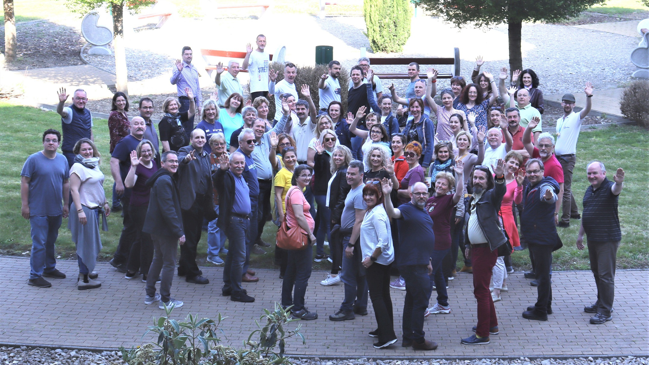 A budapesti Szent István Gimnázium és a székelyudvarhelyi Tamási Áron Gimnázium tanári kara a komáromi találkozón, a búcsú pillanata. admin17 ápr 20230 Új Szó I