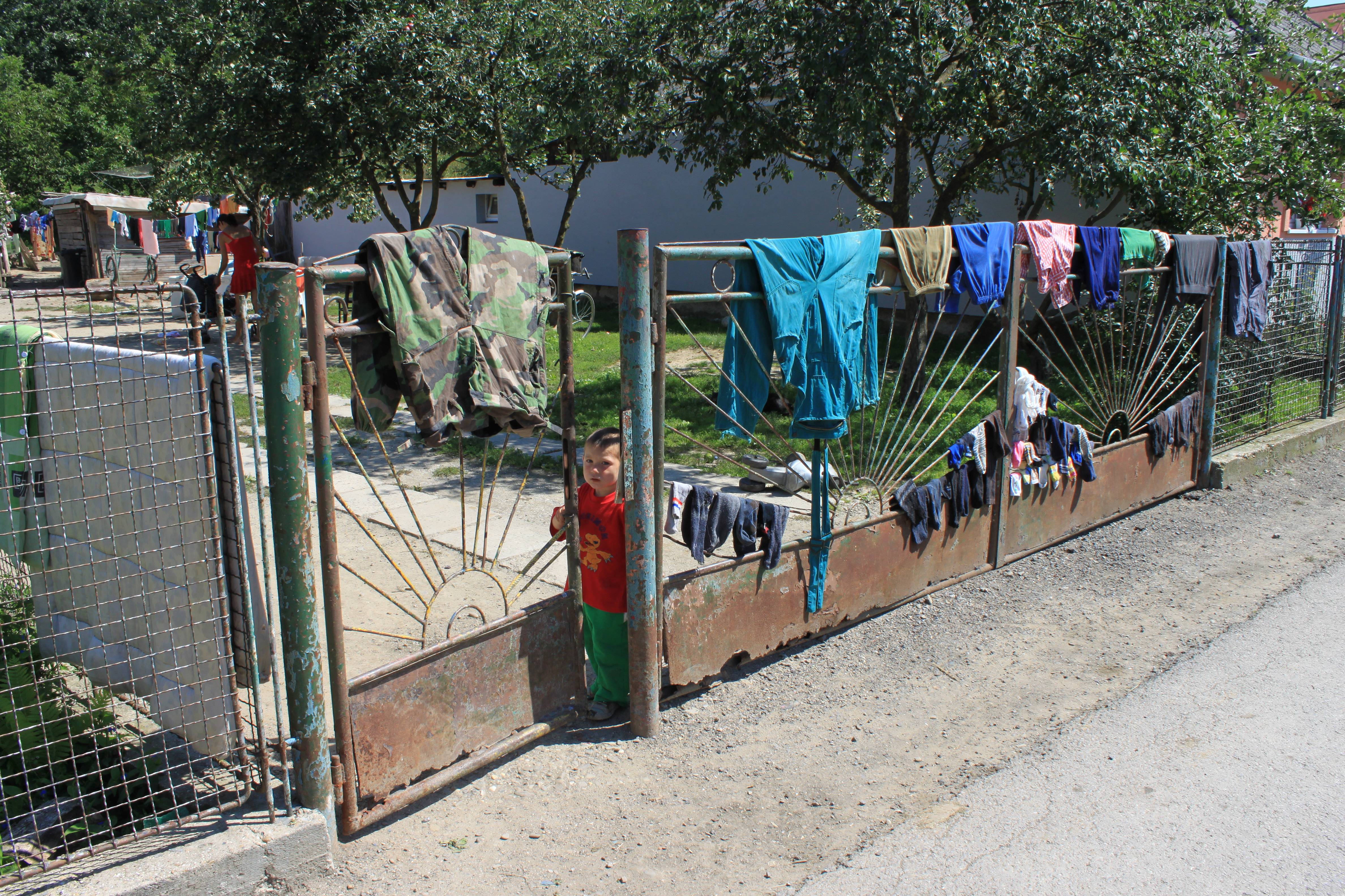 Utca részlet, kapun száradó ruhák kisfiúval a Budka-i erdőben.