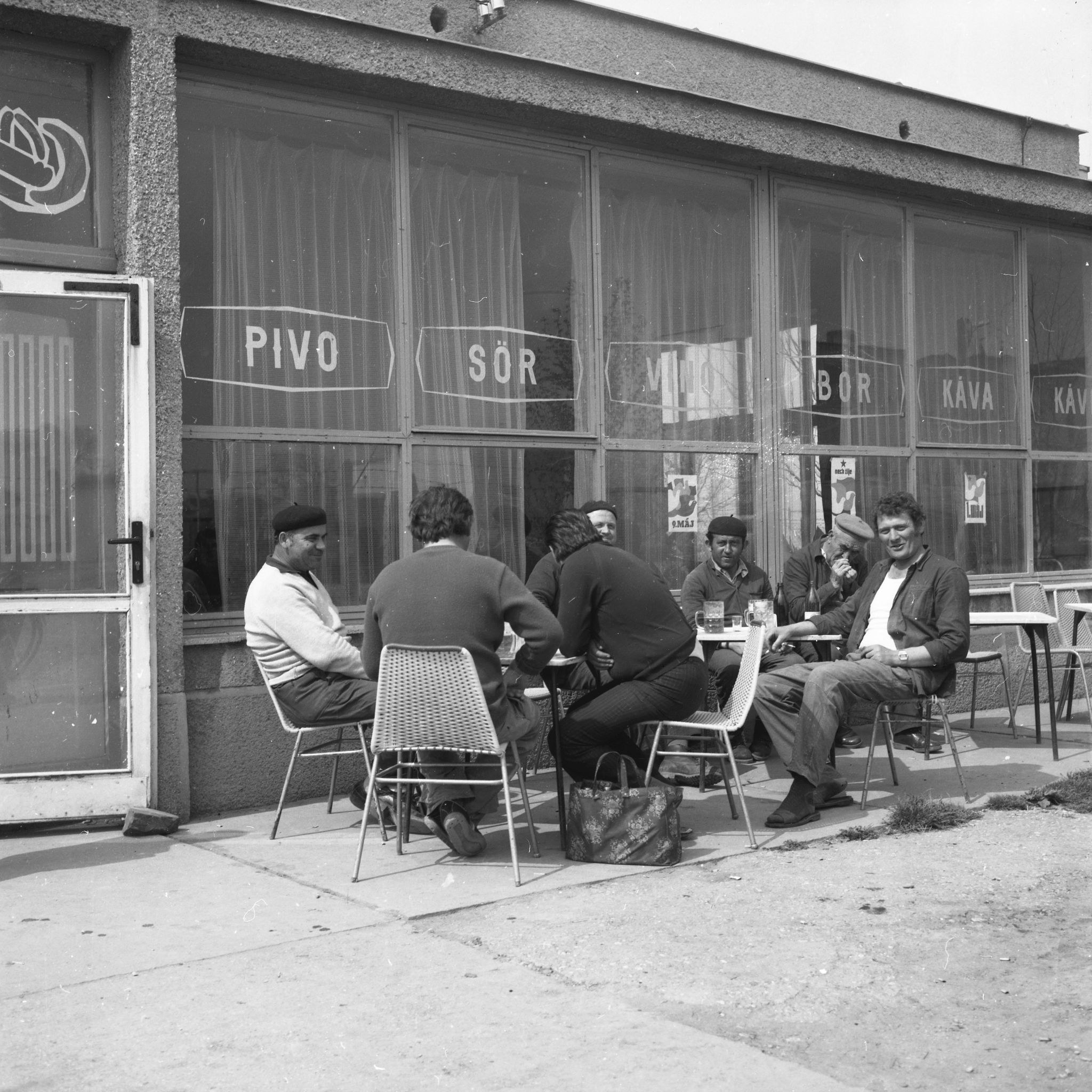 Férfiak Baráth Gábor boltja előtt. (Arany Adalbert László fotói tájakról, falvakról és emberekről az 1940-es évekből. Lipcsey Gyula hagyatéka)