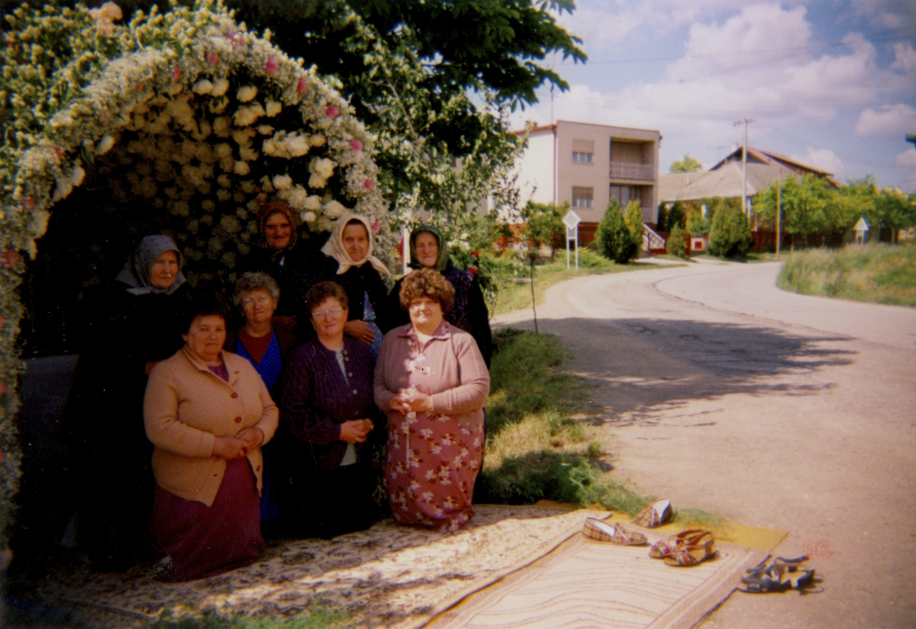 Úrnapi körmenet alkalmából készített virágsátor, másképpen szín a Szentháromságnál a 90-es években. admin22 nov 20180