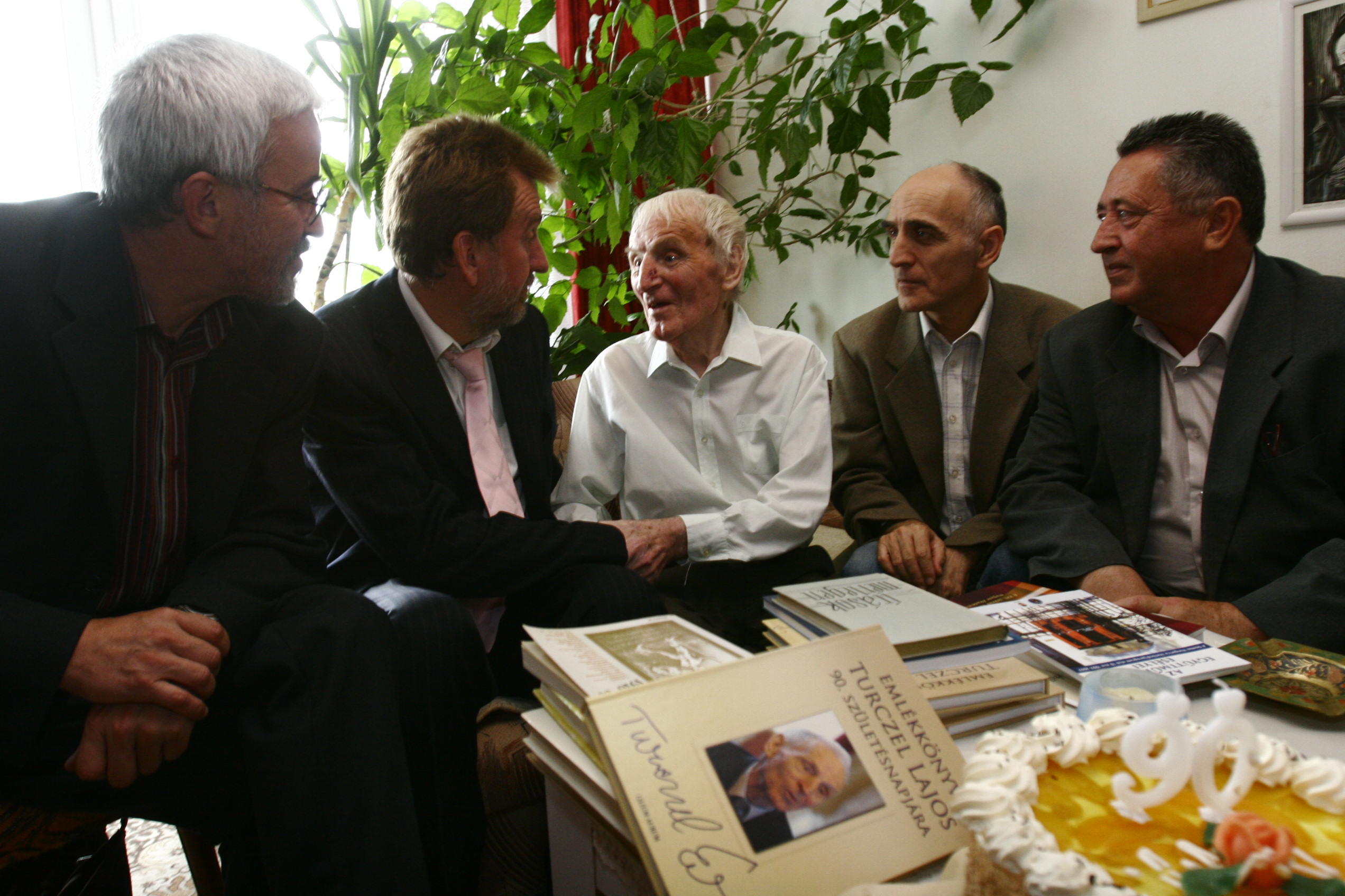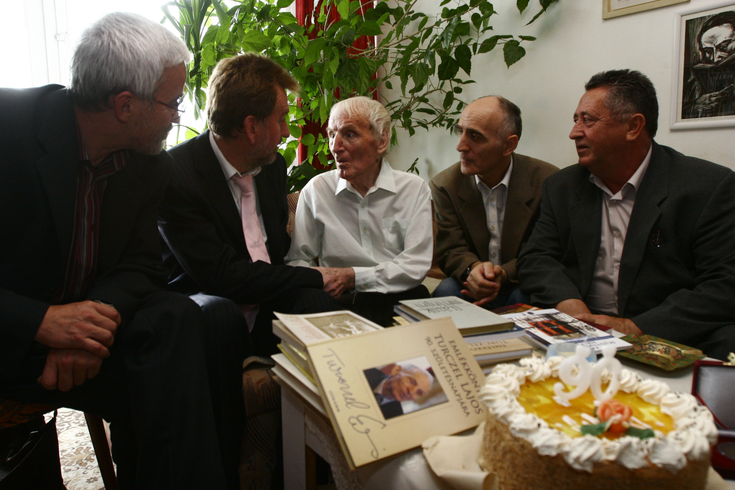 Turczel Lajos köszöntése 90. születésnapja alkalmából. A képen Tóth Károly, Hodossy Gyula, Turczel Lajos, Fazekas József és Végh László. admin07 dec 20230