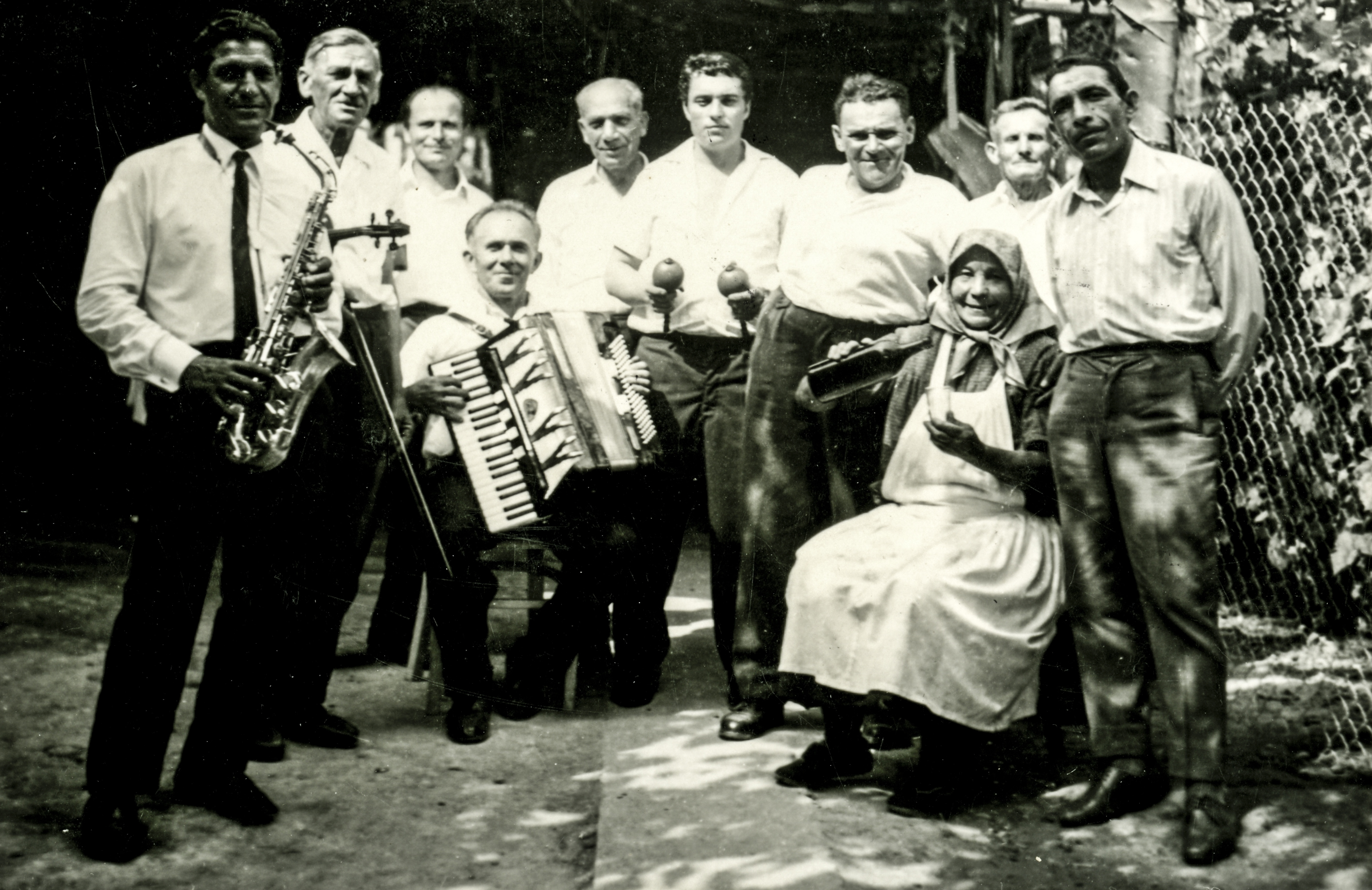 Zenészek pihenője Kurcz József lakodalmában1965-ben.