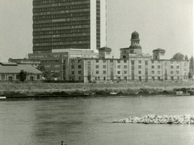 Press centrum előtérben a téli kikötő raktárépülete