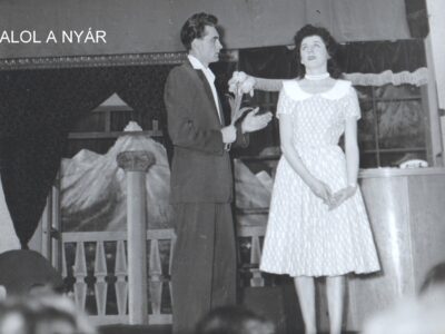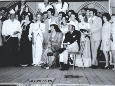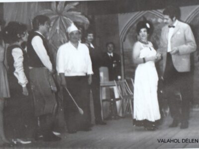 A Valahol Délen c. darab szereplői: Csefo Albert (rendező), Nagyné Bódi Erzsébet, Vasas Géza, jobbról az első sorban: Barassó Katalin, Farkas István, Farkasné Pásztor Éva Piroska, Bienik András, Takács Katalin, Kósik Jóska,… Rózsika, Belán Katalin, Jokman László, Ríz Erika, Második sorban jobbról az első: Bartók Béla, legmagasabban jobbról Ondréjsik Erzsébet szinghoffer.matyas@foruminst.sk10 jún 20250