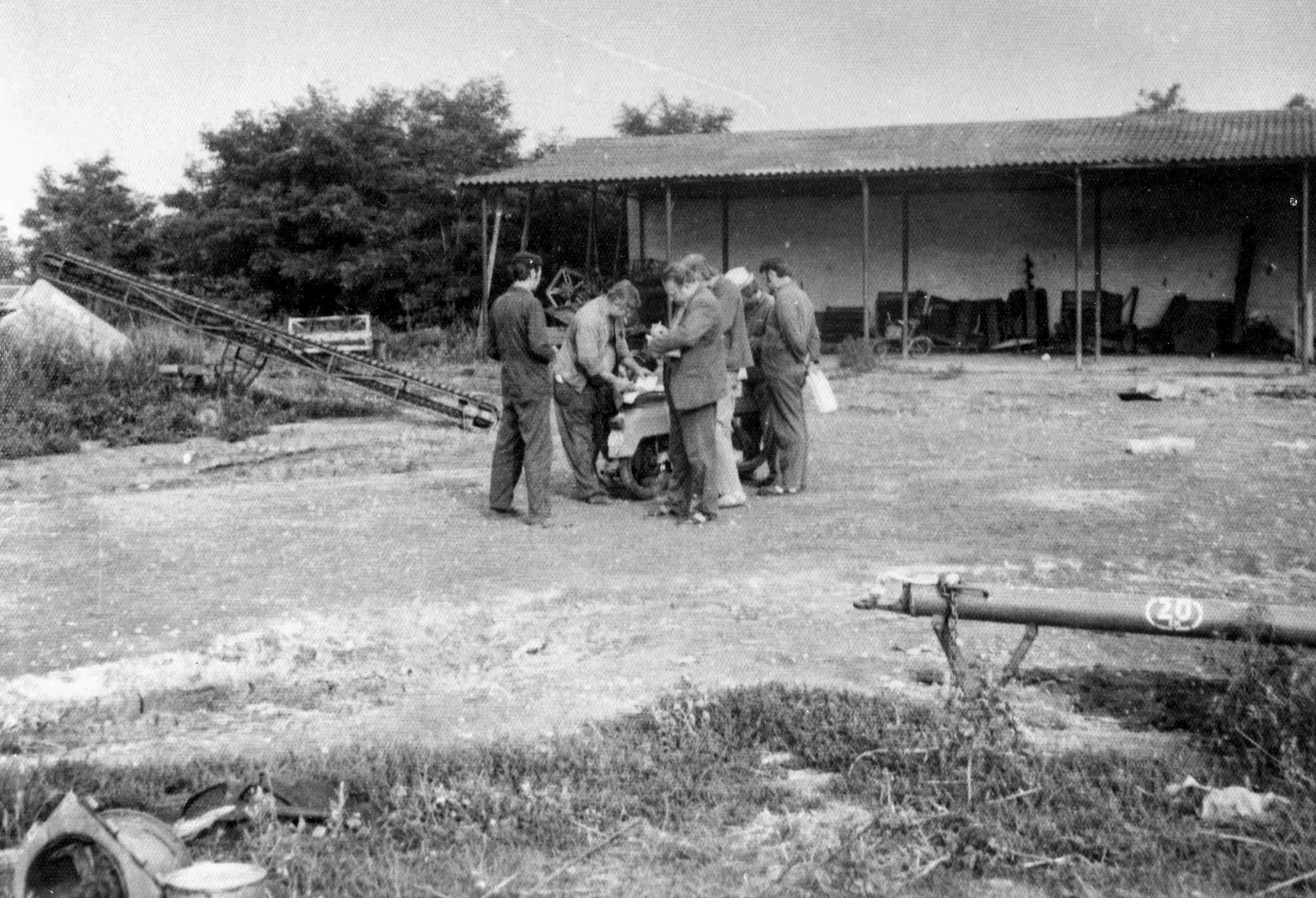 Megbeszélés a szövetkezet udvarán
