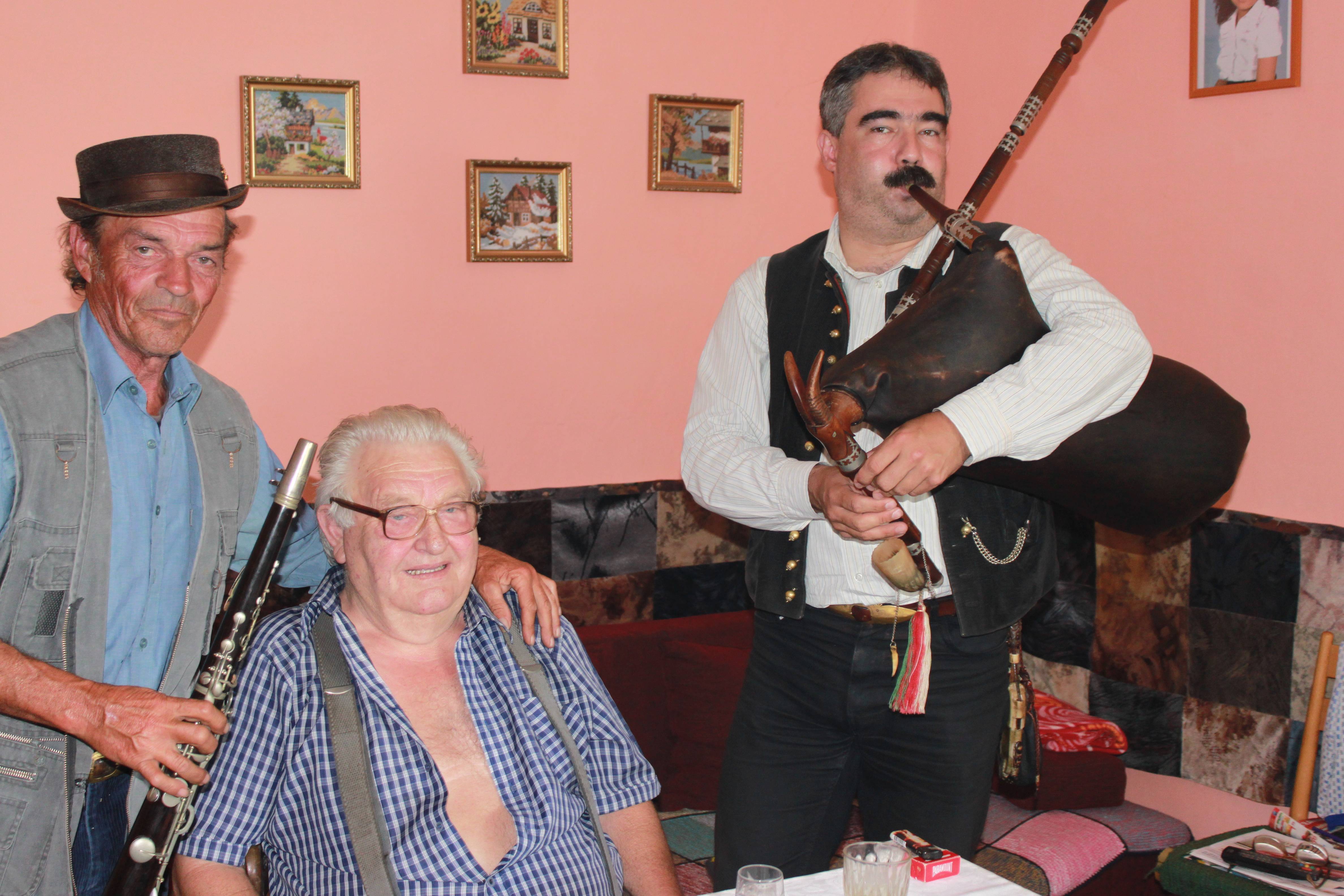 Dobcsák János juhász kampóval és Agócs Gergely tárogatóval.