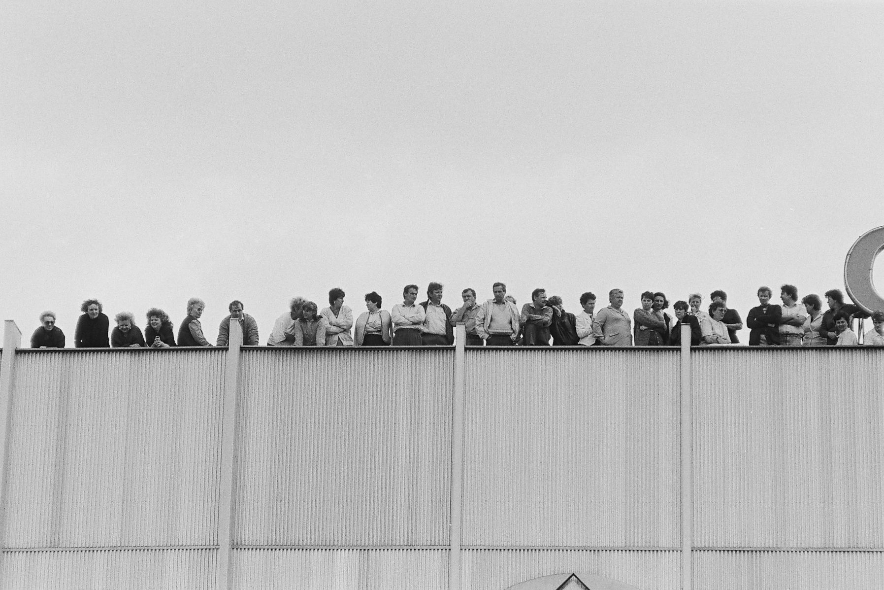 Érsekújvári lakosok Václav Havelra várva az üzletház tetején.