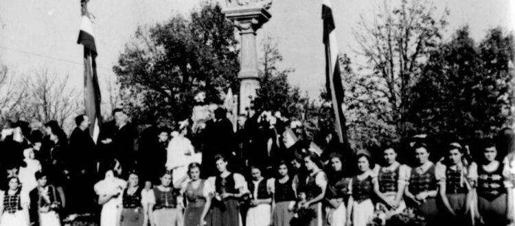 Ünnepi ruhás lányok a magyar honvédség megérkezésére várva