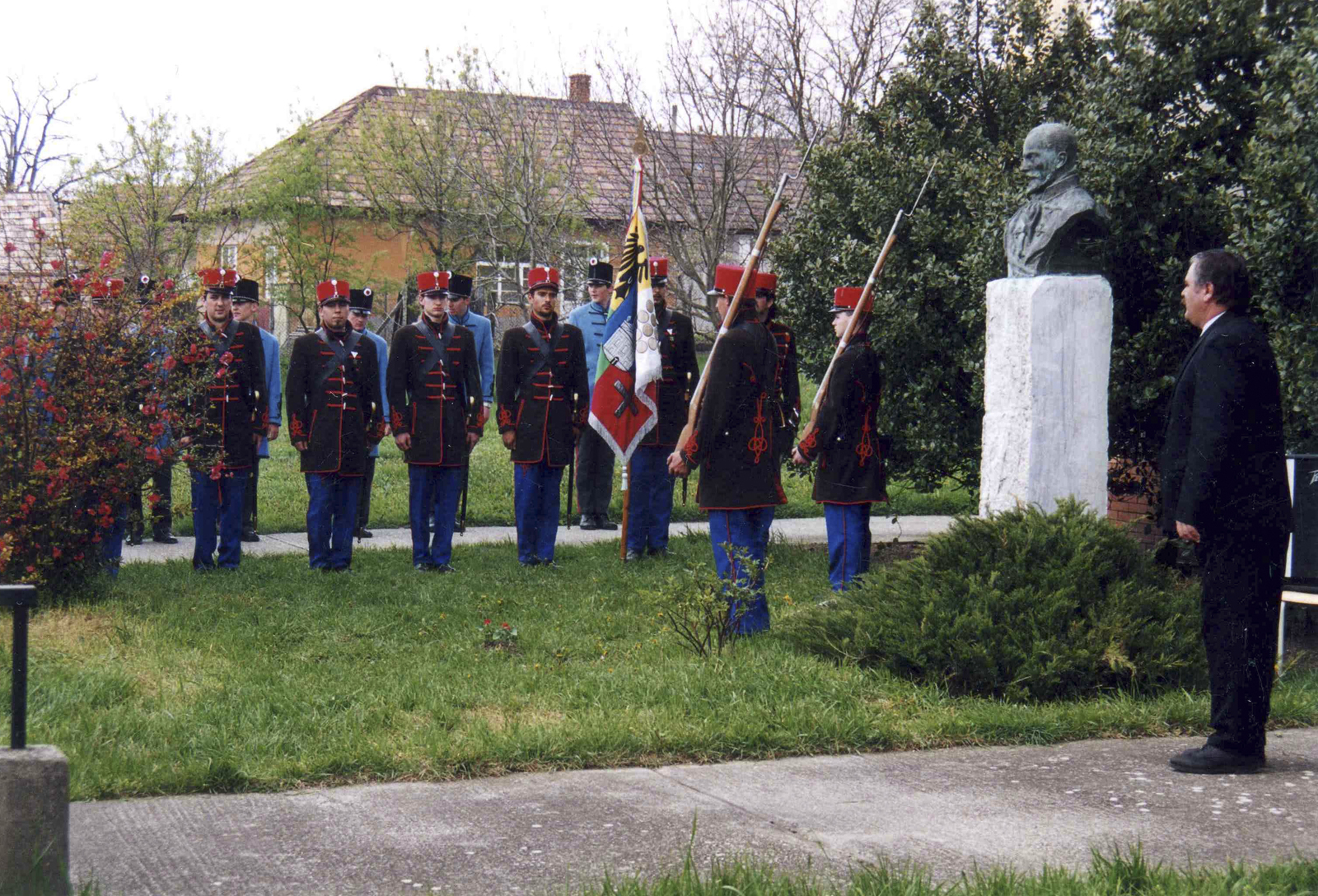 9. Vörössipkás Zászlóalj az 1999-ben felavatott Görgey Arthúr melllszobornál a Tavaszi Hadjárat emlékünnepségen.
