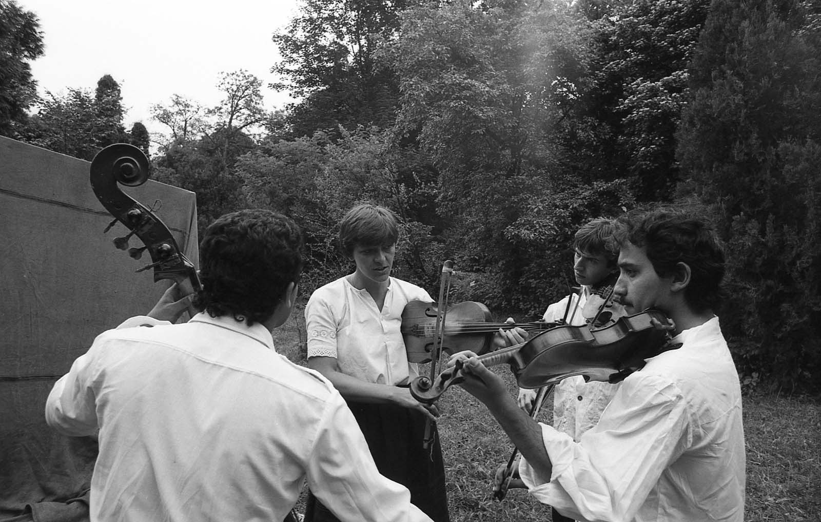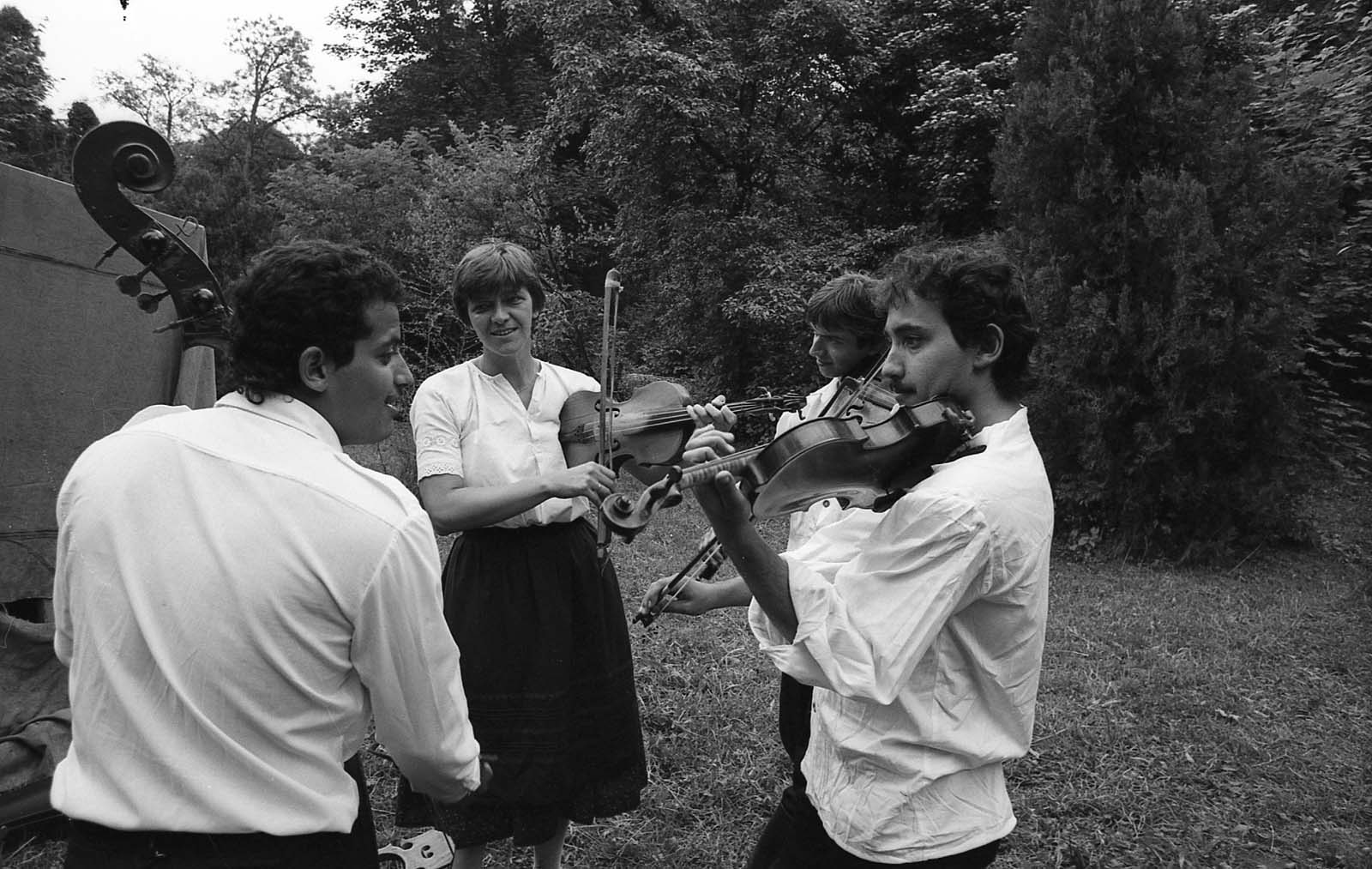 A Csalló Néptánccsoport zenekara a színpad mögött. (XXX. Országos Népművészeti Fesztivál)