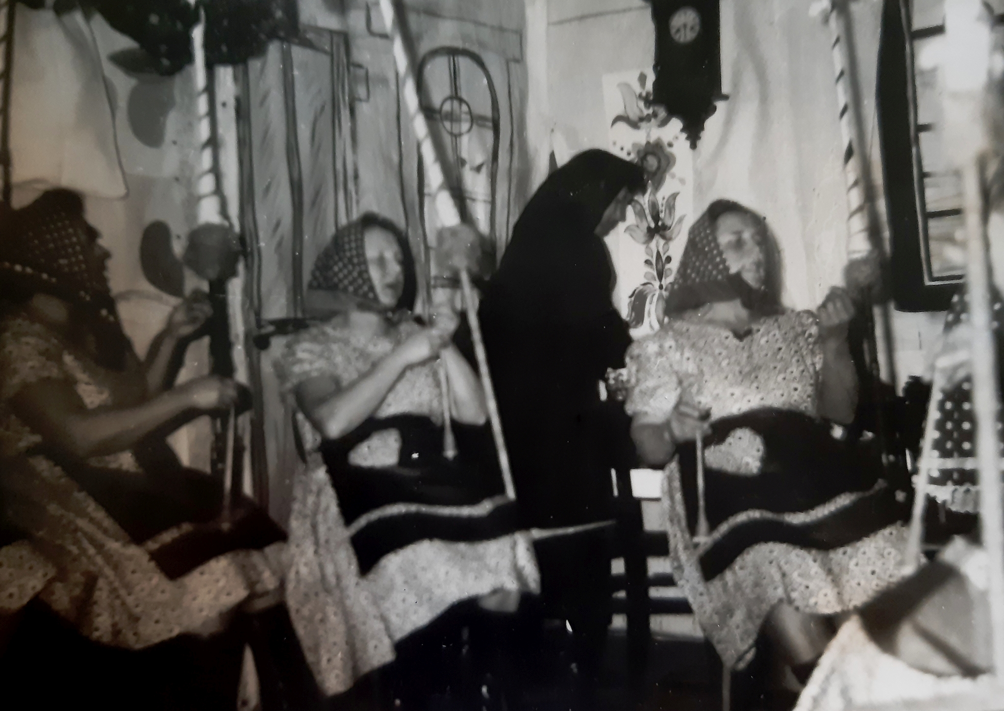 A CSEMADOK színházi előadása Csobády Magda tanitó nő rendezésében. A képen Iván Ilona, Gecs Margit és Elek Margit.