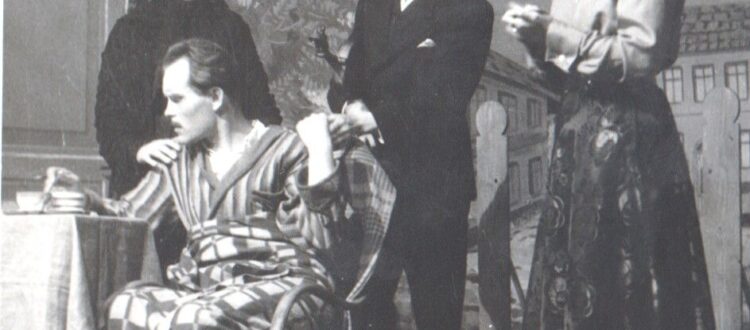 A Dankó Pista c. színmű egyik jelenete: Tóth Kálmánné, Kasza Lajos, Pulcner Zoltán, Eggenhoffer Ica