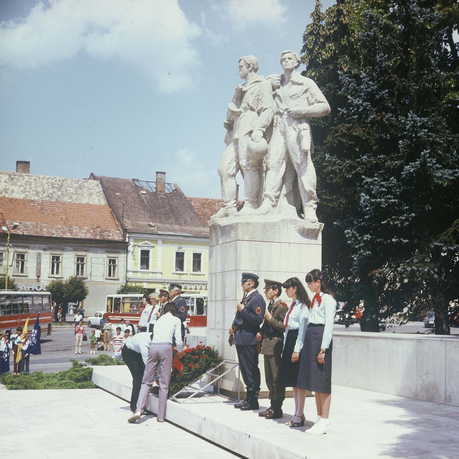 A Felszabadulási emlékmű ünnepélyes megkoszorúzása Rozsnyón a Bányászok terén. (XXVIII. Országos Kulturális Ünnepély)