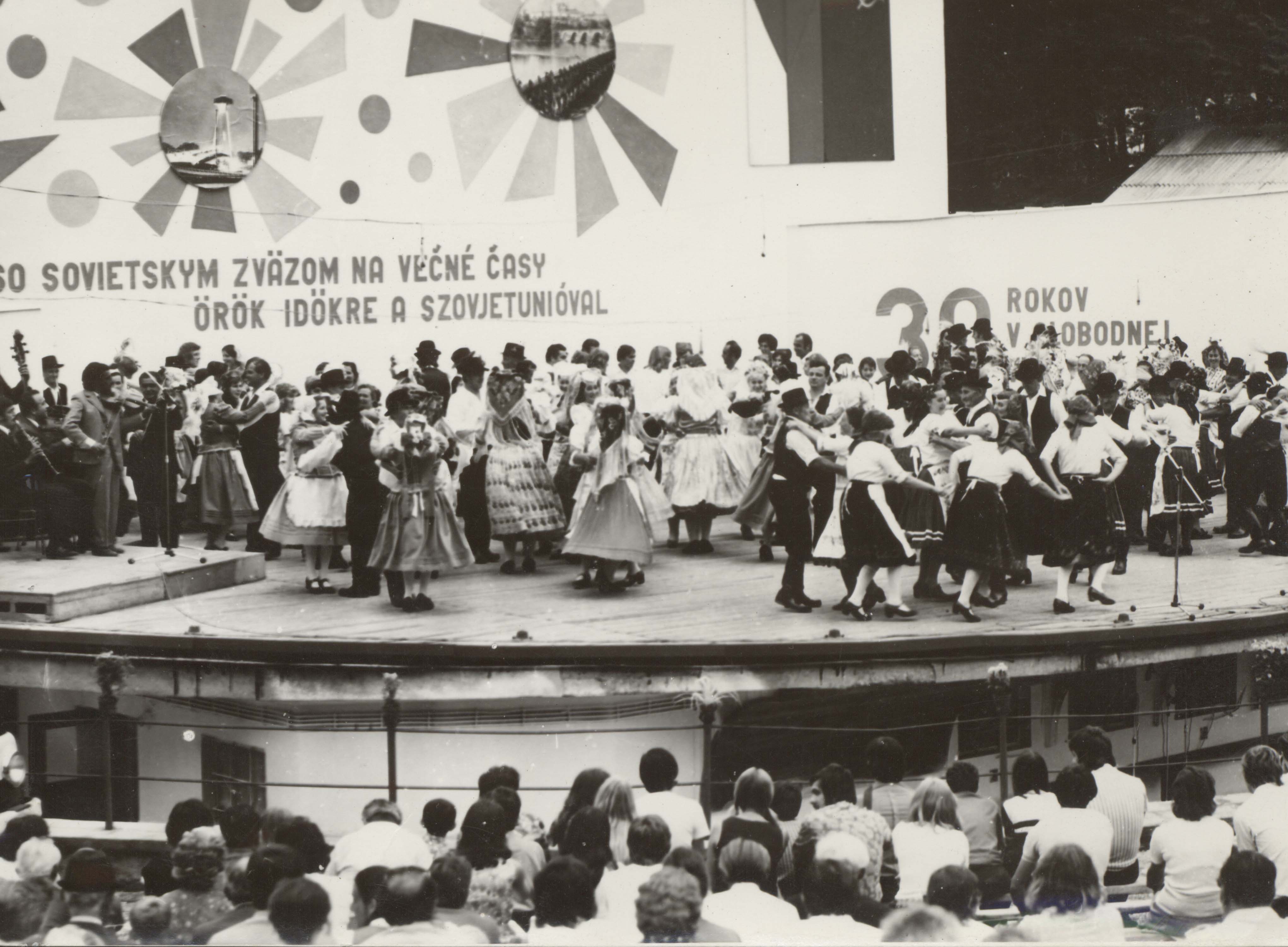 A hagyományőrző csoportok közös tánca. (XX. Országos Dal- és Táncünnepély)