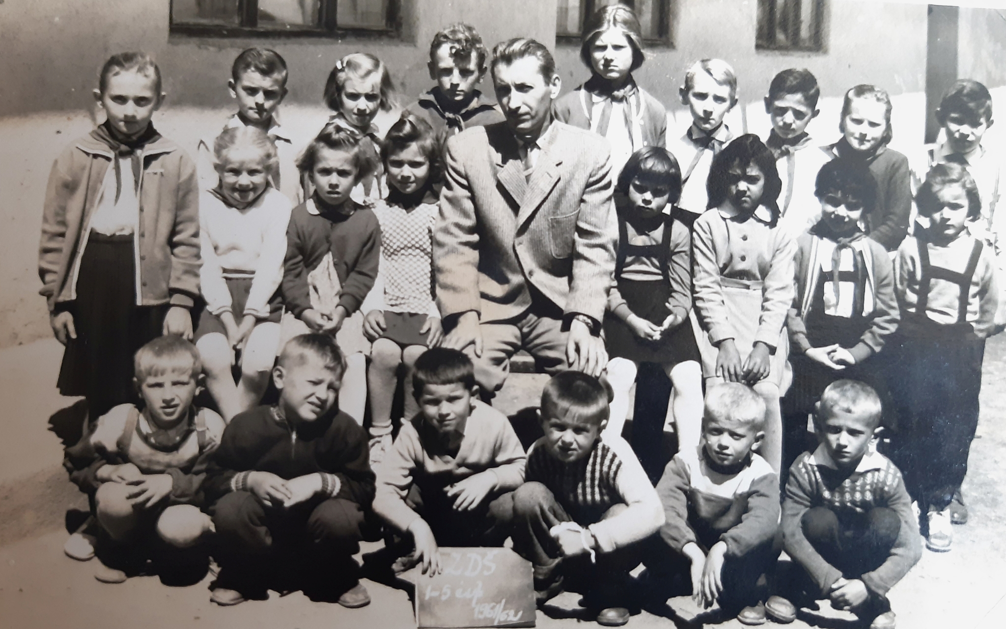 A jabloncai alapiskola csoportképe. Középen Szabó Gyula tanár úr, T.Kovács Péter ,Kovács MiklóS, Tamás Árpád és Angyal Jolán diákok társaságában.