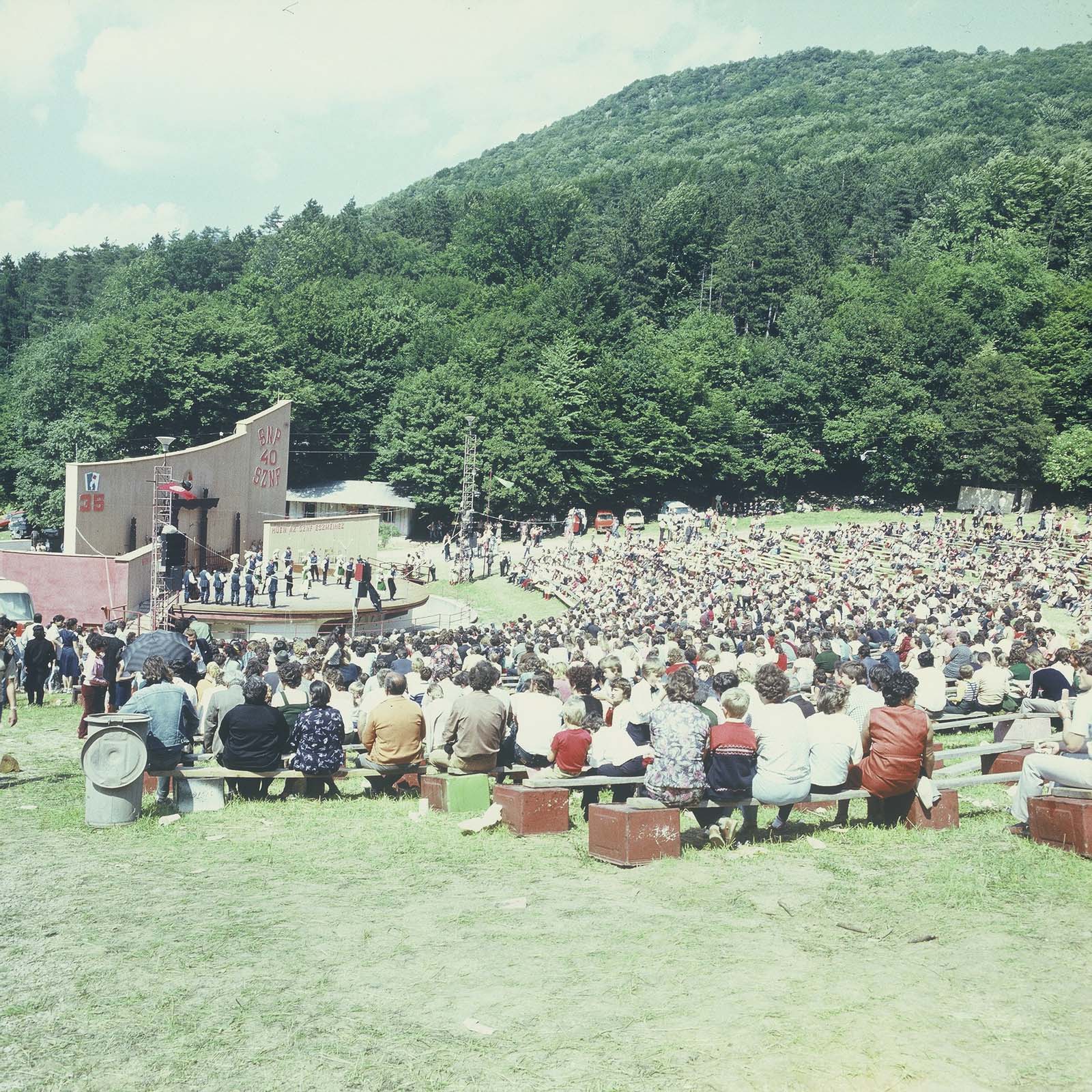 A közönség 1984-ben, a Csemadok 35 éves évfordulóján. (a színpadon valószínűleg a lengyel vendégcsoport) (XXIX. Országos Kulturális Ünnepély)