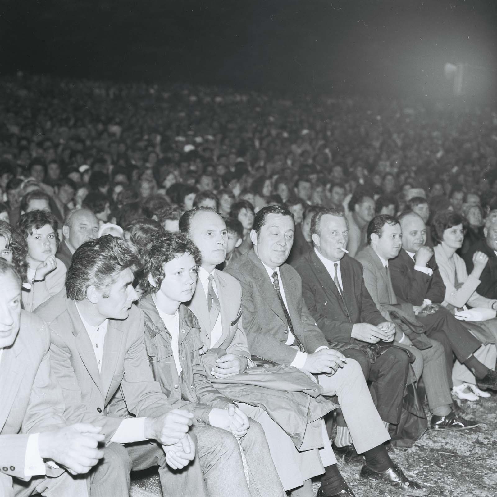 A közönség. (balról 3. Krivosik I. a MATESZ ig, 4. Koczka I. a NI. nemzetiségi osztály vezetője 5. a NI. igazgató) (XVII. Országos Dal- és Táncünnepély)