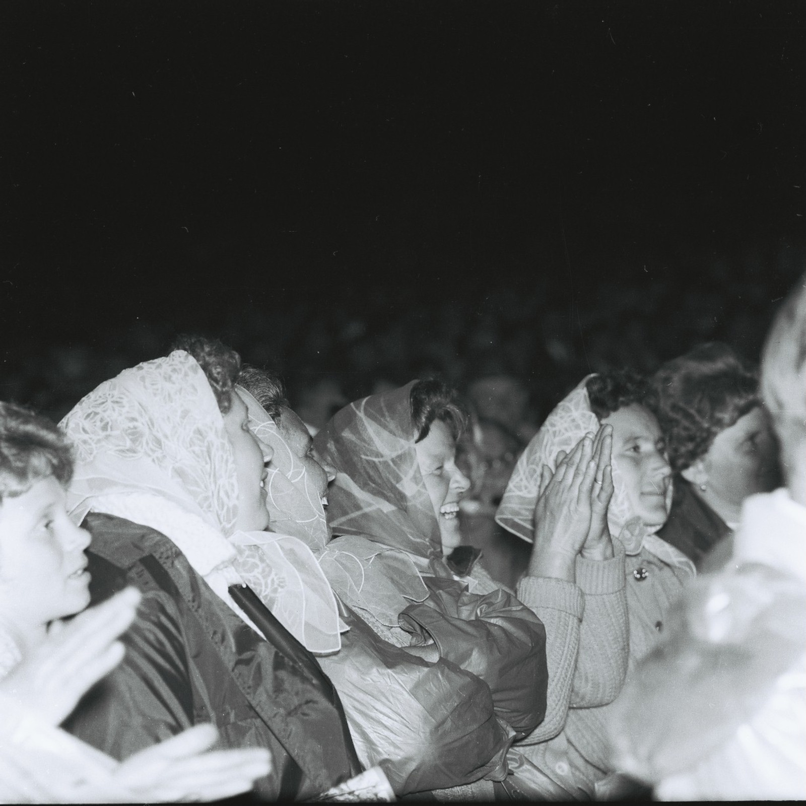 A közönség közeli képe, fejkendős asszonyok. (X. Országos Dal- és Táncünnepély)