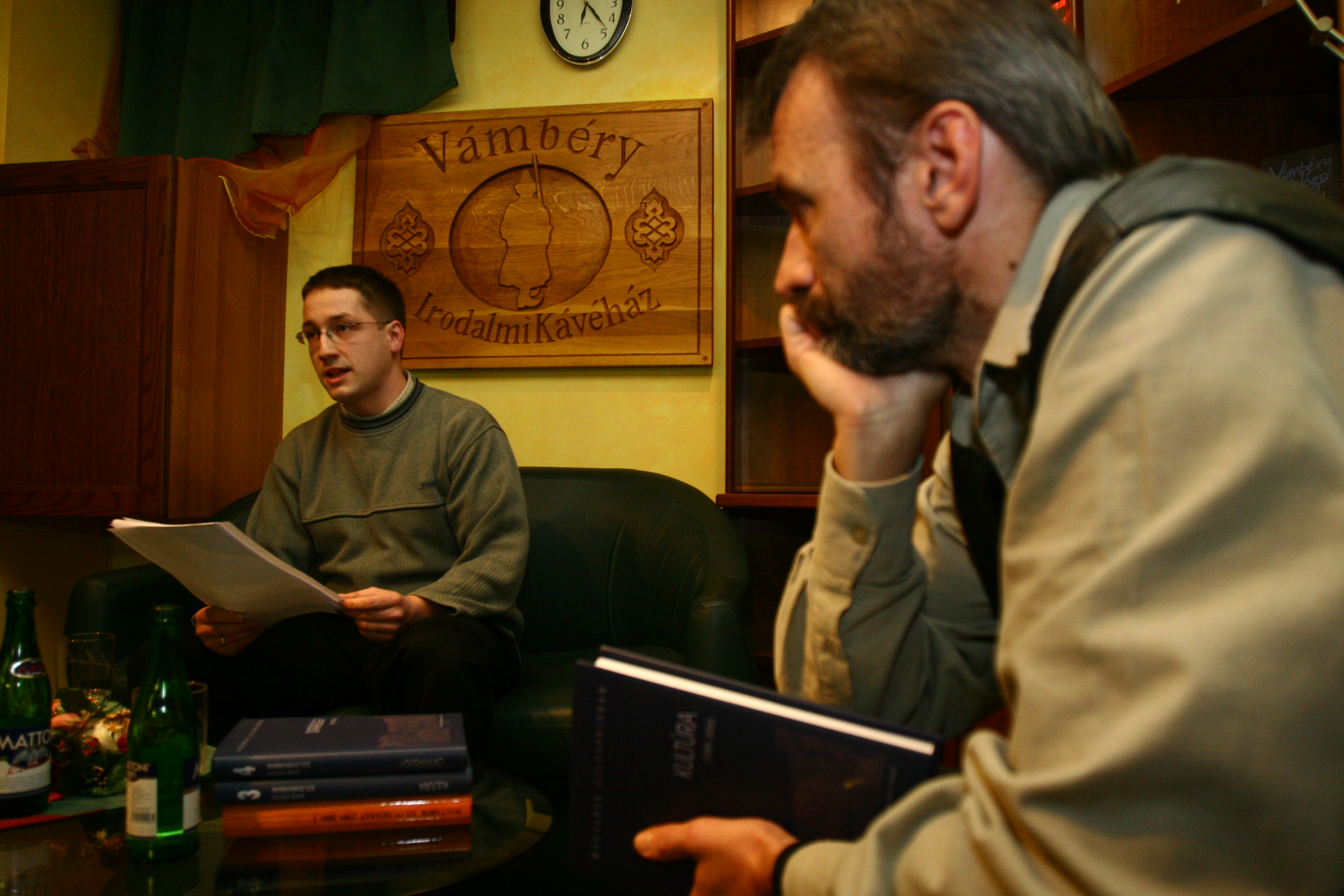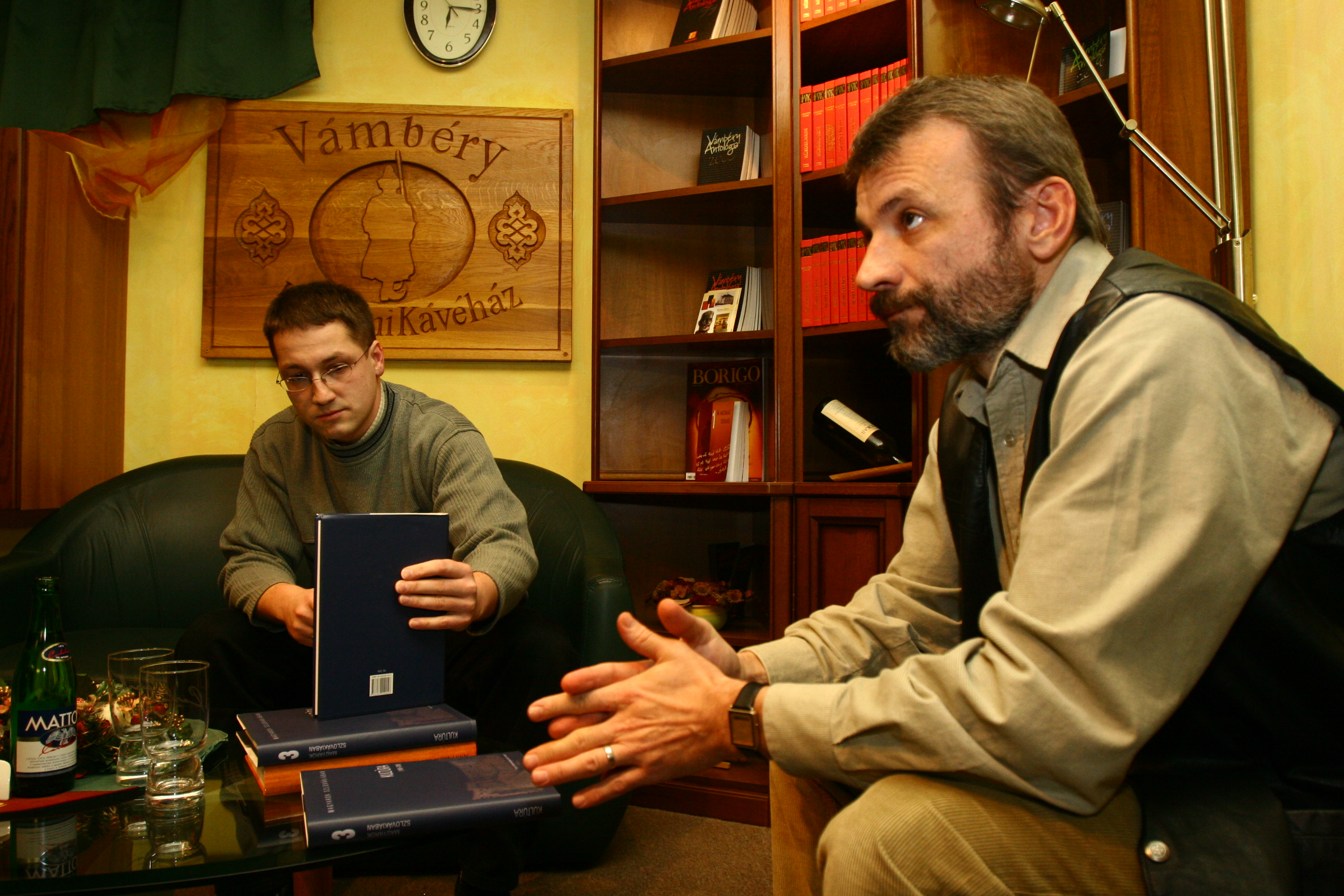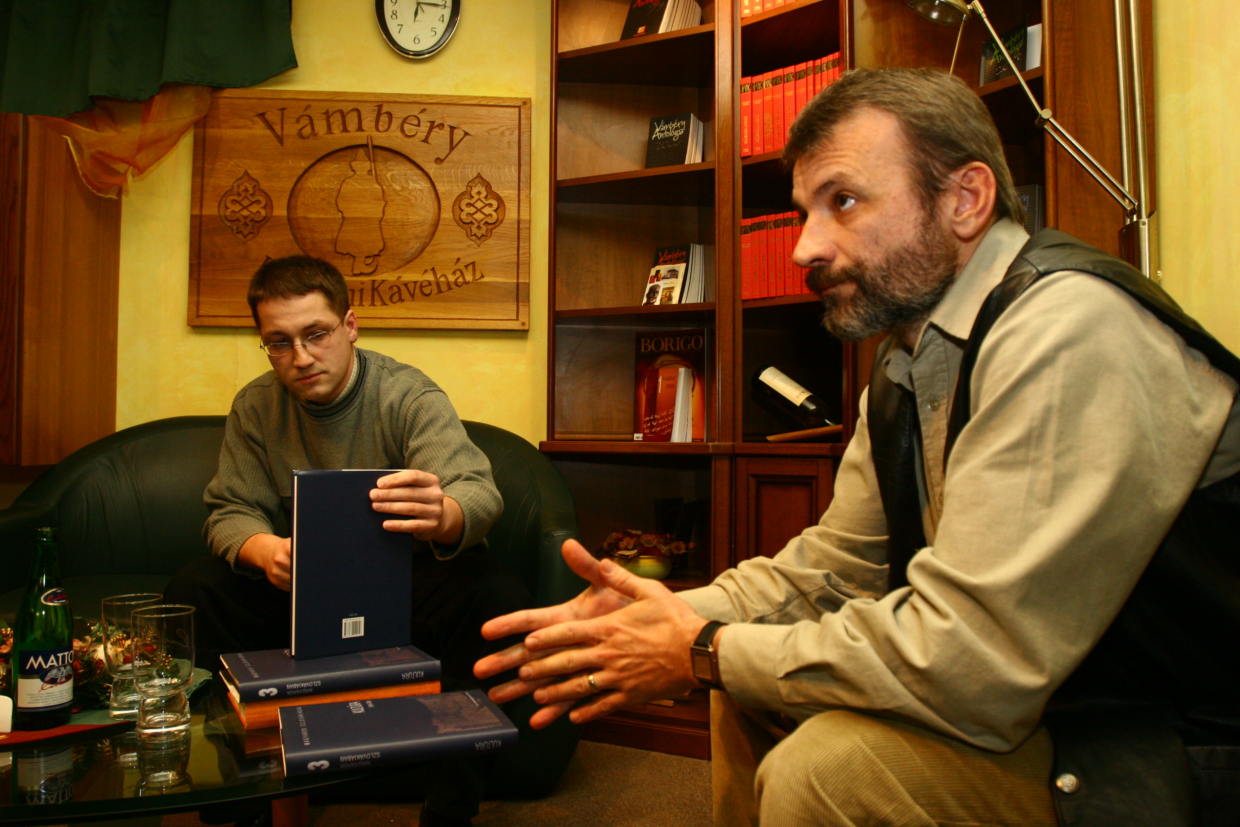 A Magyarok Szlovákiában című könyvsorozat, Kultúra (1989-2006) címen megjelent kötetének bemutatója a Vámbéryben. A képen Korpás András és Csanda Gábor.