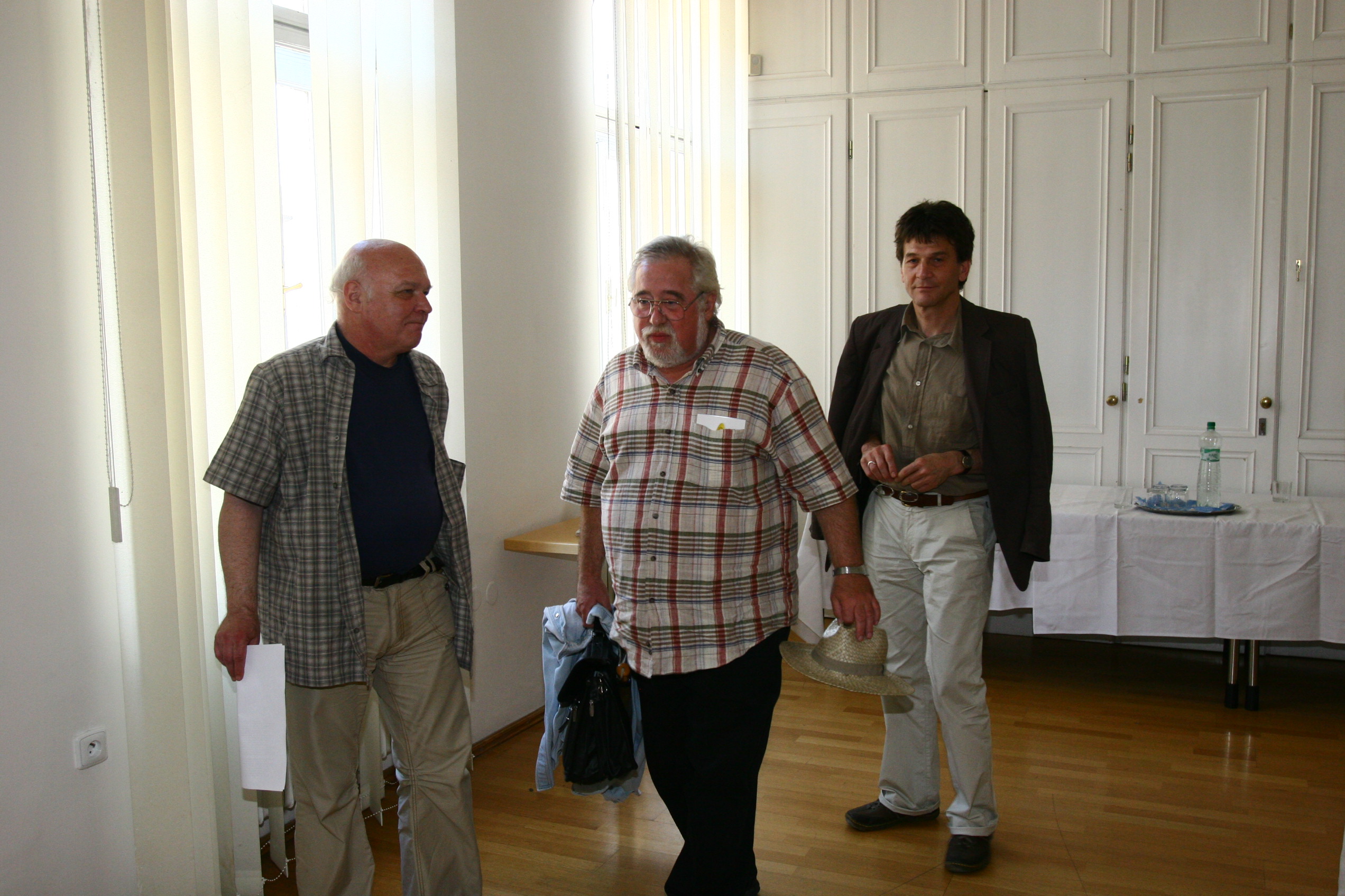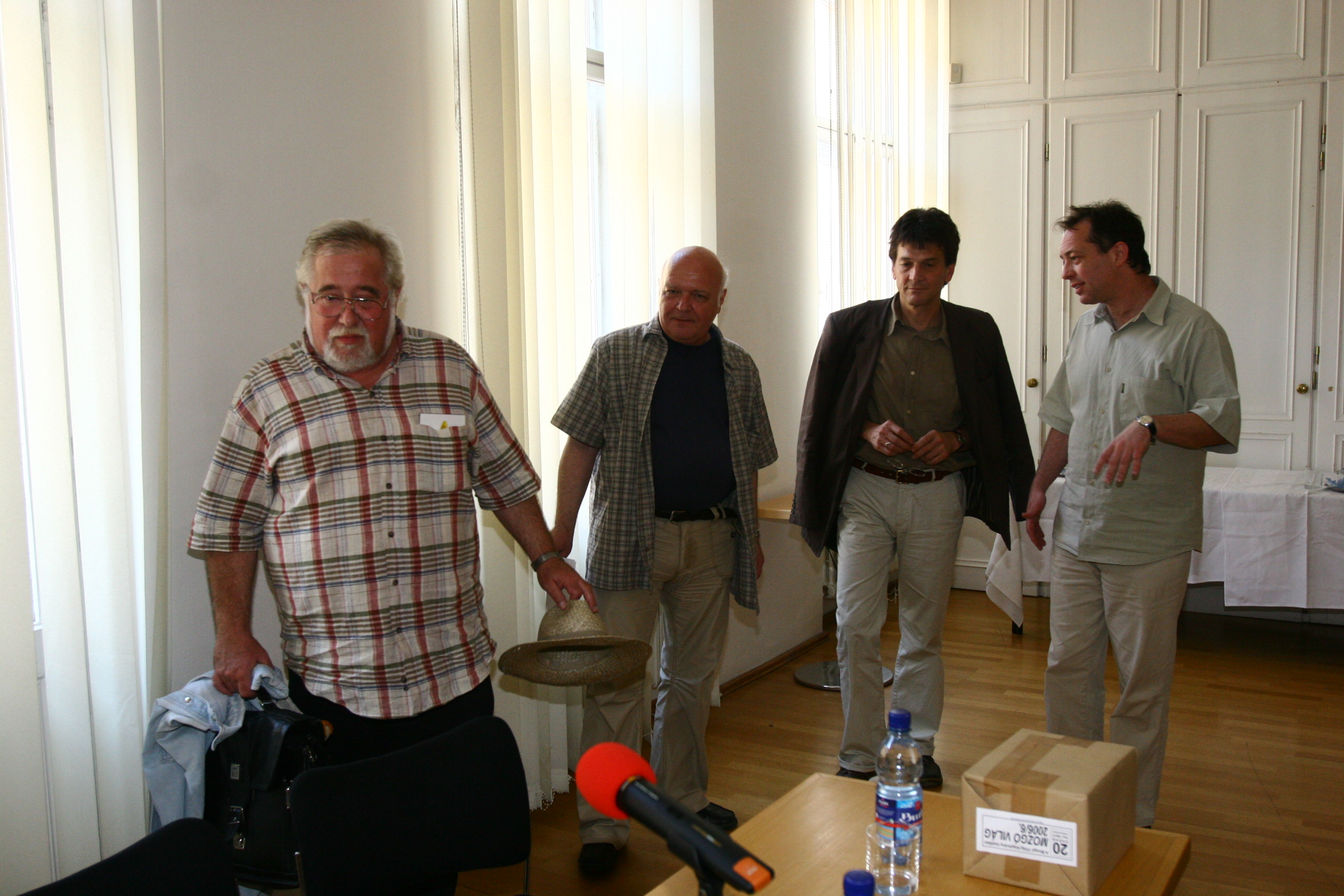 A Mozgó Világ című társadalmi-kulturális folyóirat bemutatója a Magyar Köztársaság Kulturális Intézetének székházában. A képen Barna Imre, Grendel Lajos és Mező Ferenc.