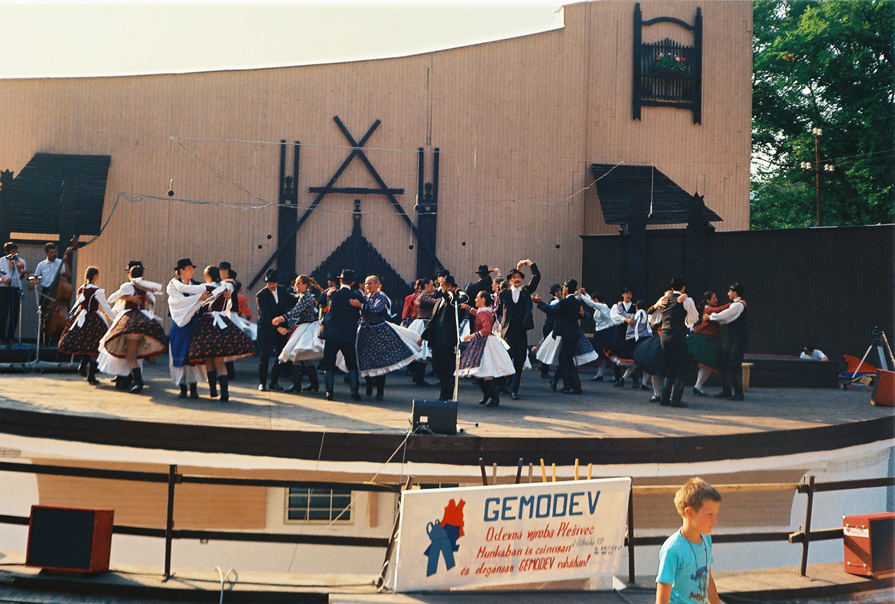 A műsorban szereplő csoportok közös zárótánca. (XXXIX. Országos Kulturális Ünnepély)