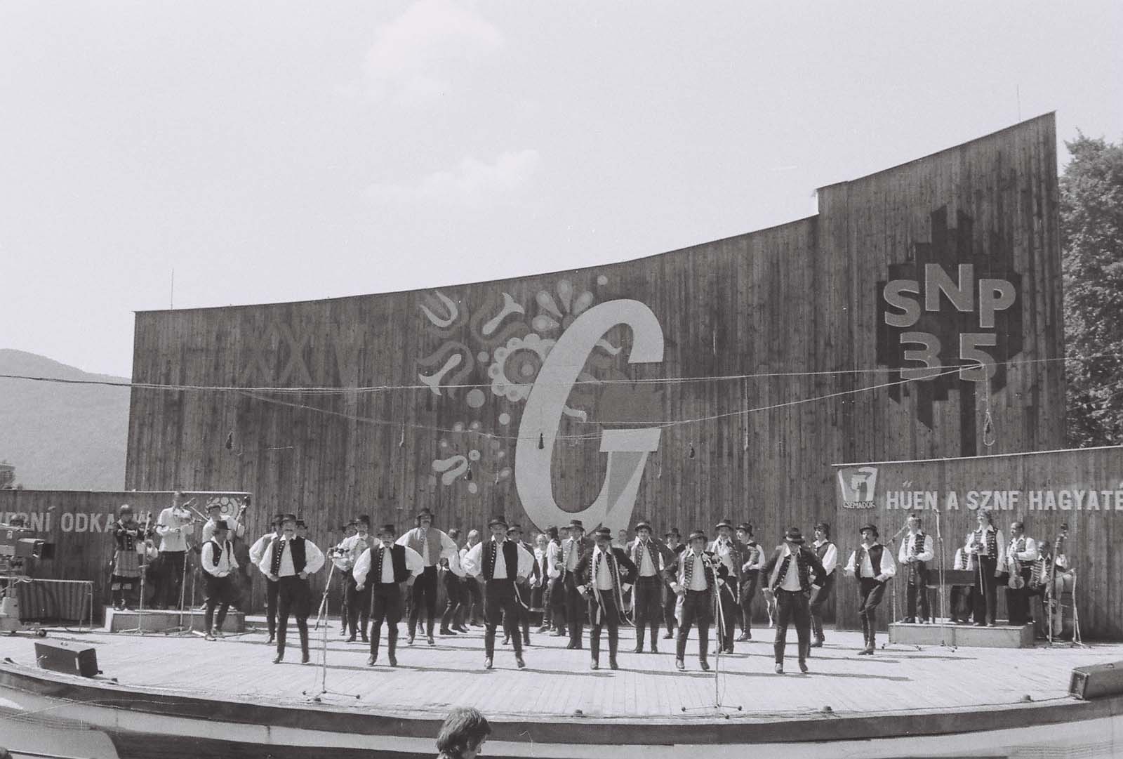 A Nagyidai Helyi Művelődési Otthon Ilosvai Táncegyüttesének és a CSEMADOK KB Szőttes Népművészeti Csoportjának Ág Tibor – Quittner János: Katonakísérő című műsora. (a képen az Ilosvai Táncegyüttes, Nagyida és a Szőttes Népművészeti Csoport férfi tánckara) (XXIV. Országos Kulturális Ünnepély)