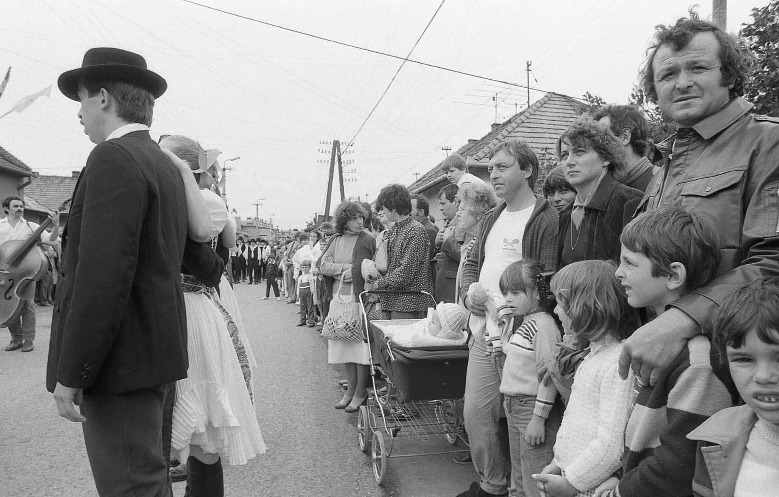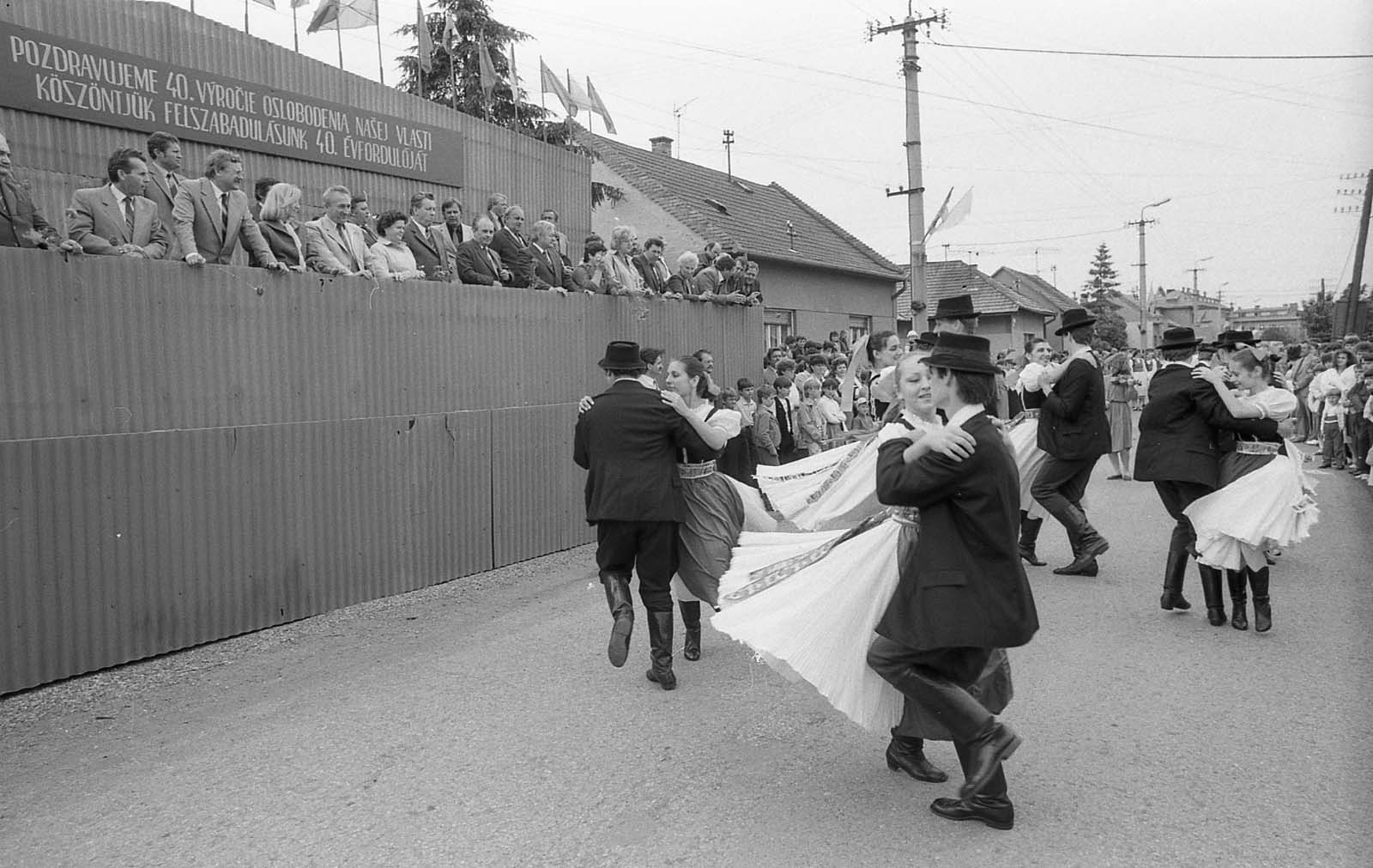 A népművészeti csoportok színes menettánca (XXX. Országos Népművészeti Fesztivál) (azonosítatlan tánccsoport a tribün előtt)