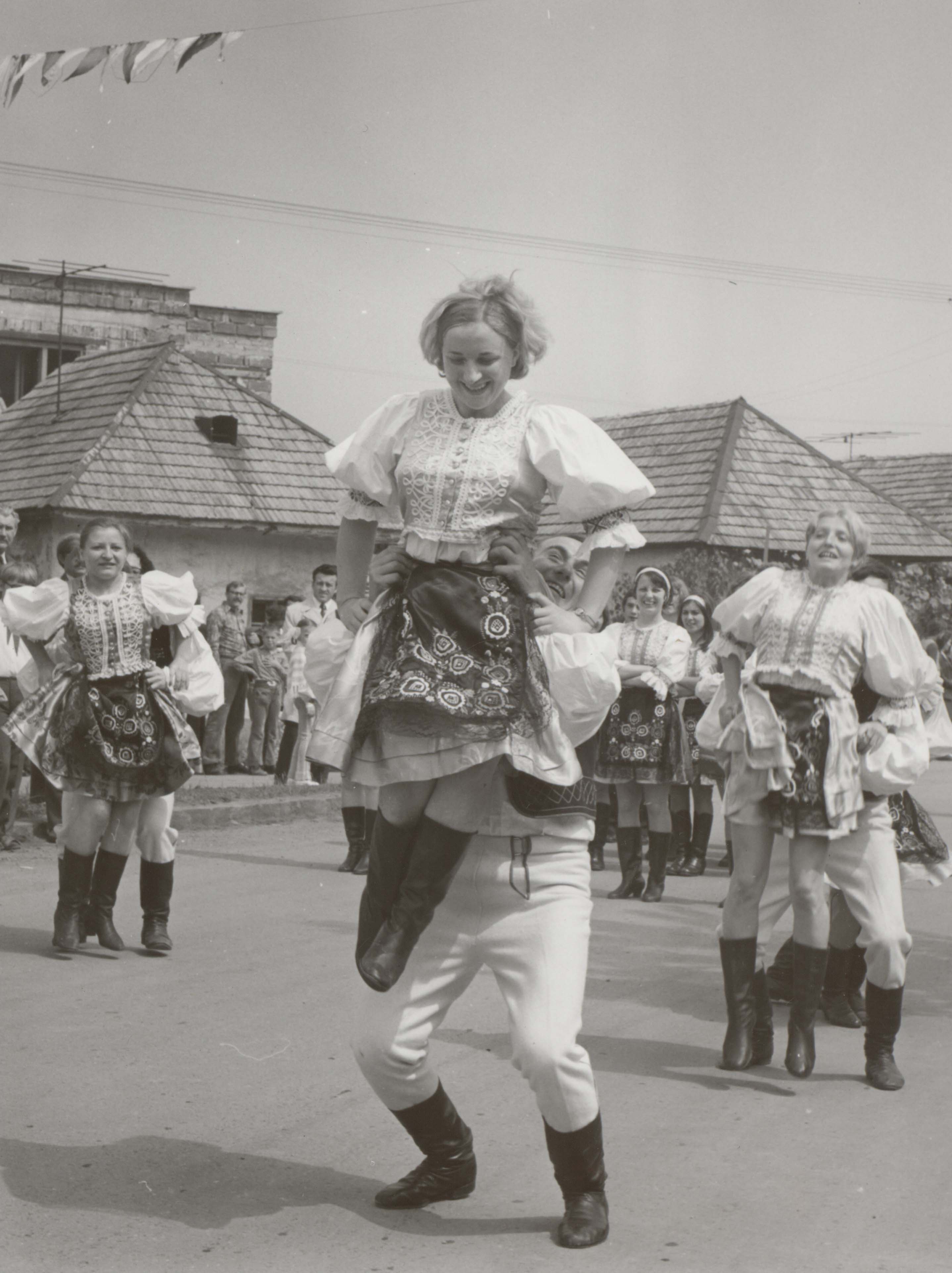 A népművészeti csoportok ünnepi felvonulása. (XIX. Országos Népművészeti Fesztivál, Zselíz) (a képen a trencséni TRENČAN Táncegyüttes)