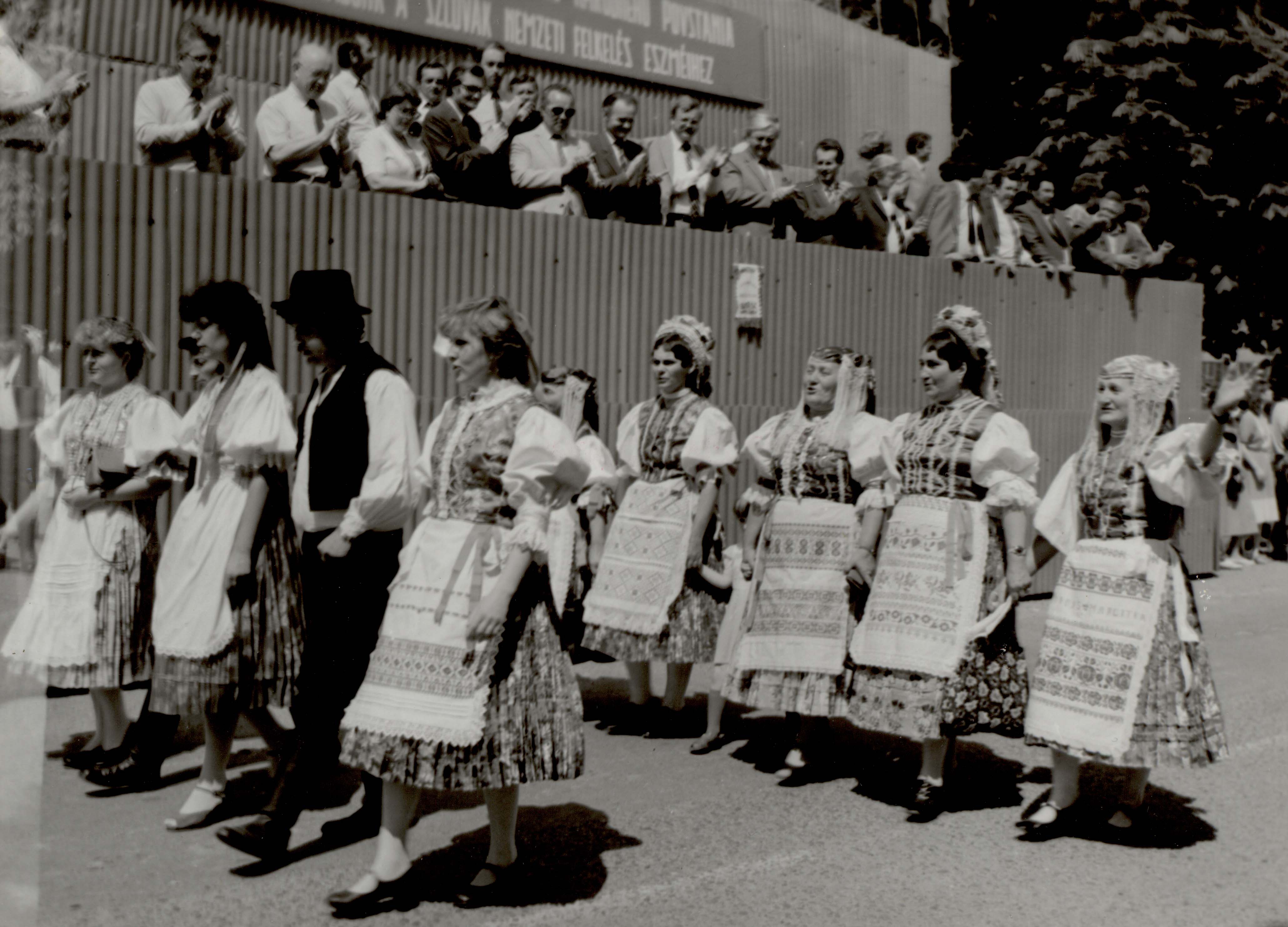 A népművézseti csoportok menettánca. (XXIX. Országos Népművészeti Fesztivál, Zselíz) (a képen az ipolyvarbói folklórcsoport)