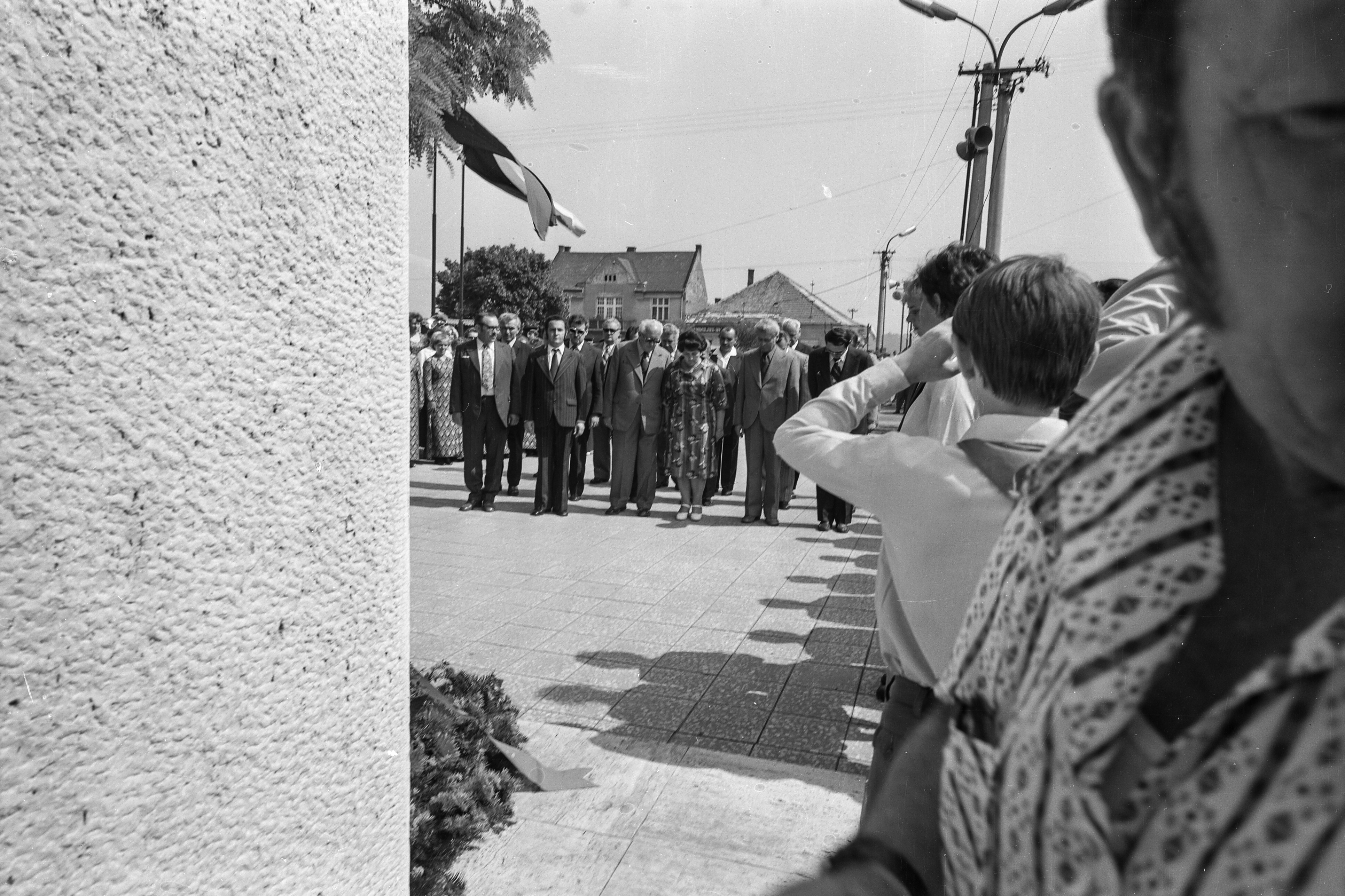 A politikai küldöttség az elesett szovjet katonák emlékművének megkoszorúzásánál Pelsőcön. (középen Lőrincz Gyula a Csemadok országos elnöke) (XXII. Országos Kulturális Ünnepély)