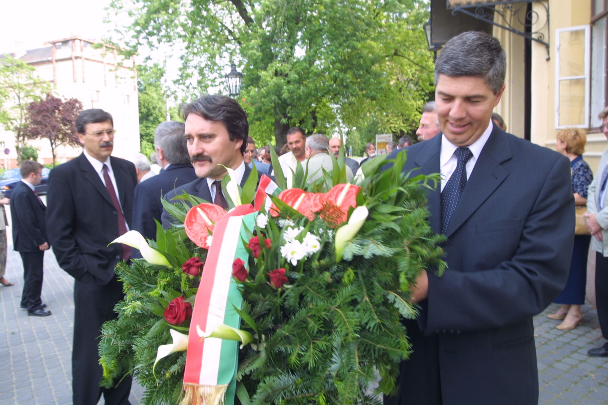 A Pro Probitate – Helytállásért díjátadó. A képen Farkas Pál, Bárdos Gyula és Bugár Béla koszorúznak.