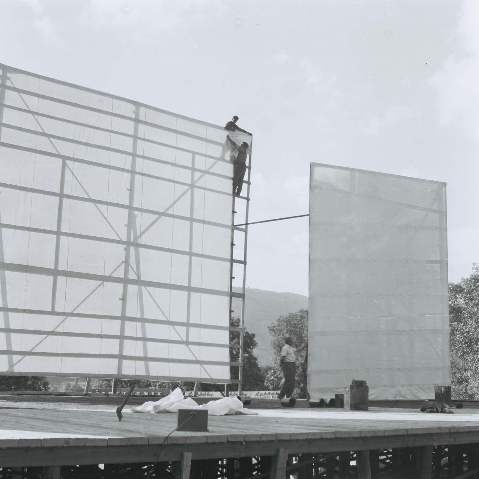 A színpad építése. (VII. Országos Dal- és Táncünnnepély)