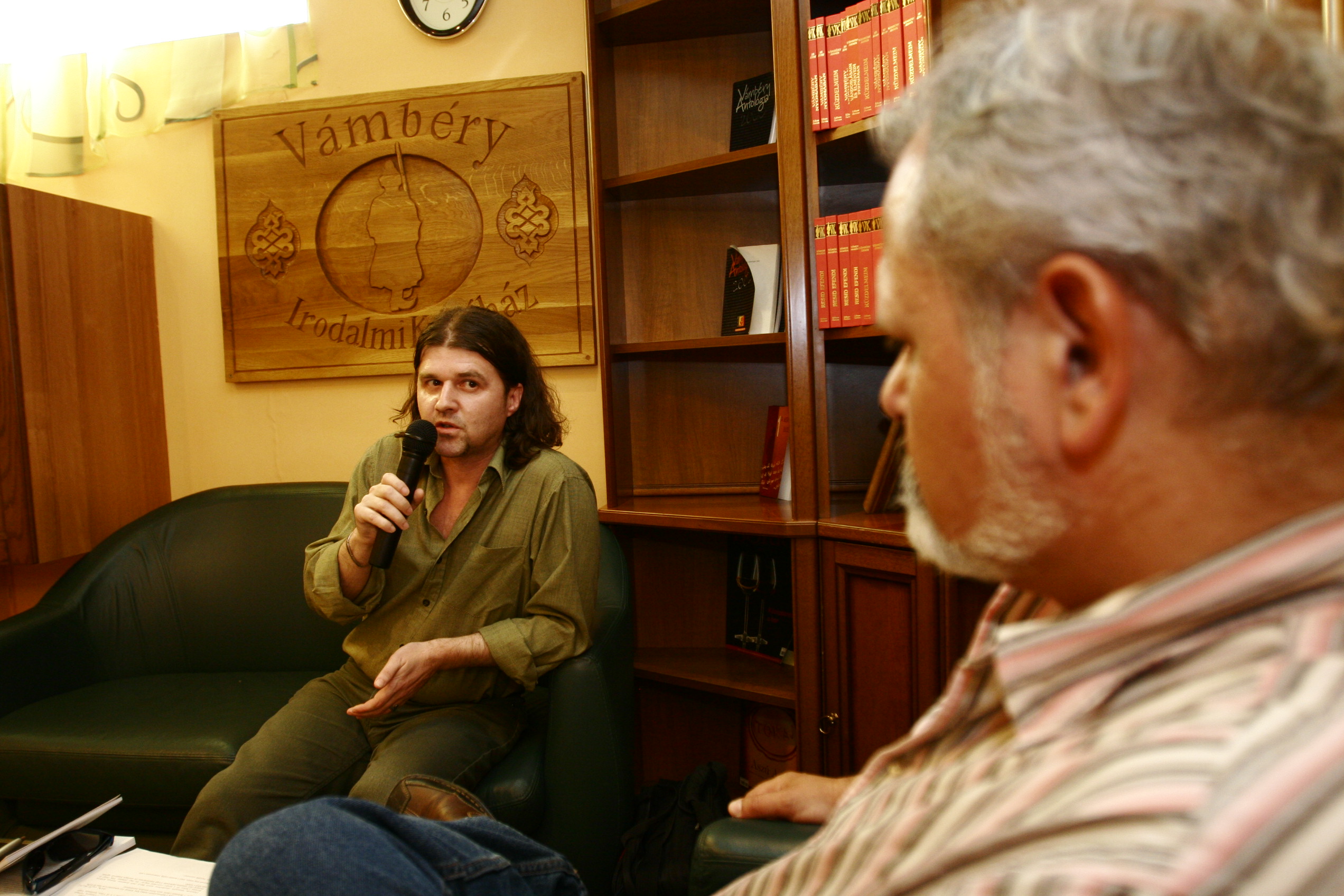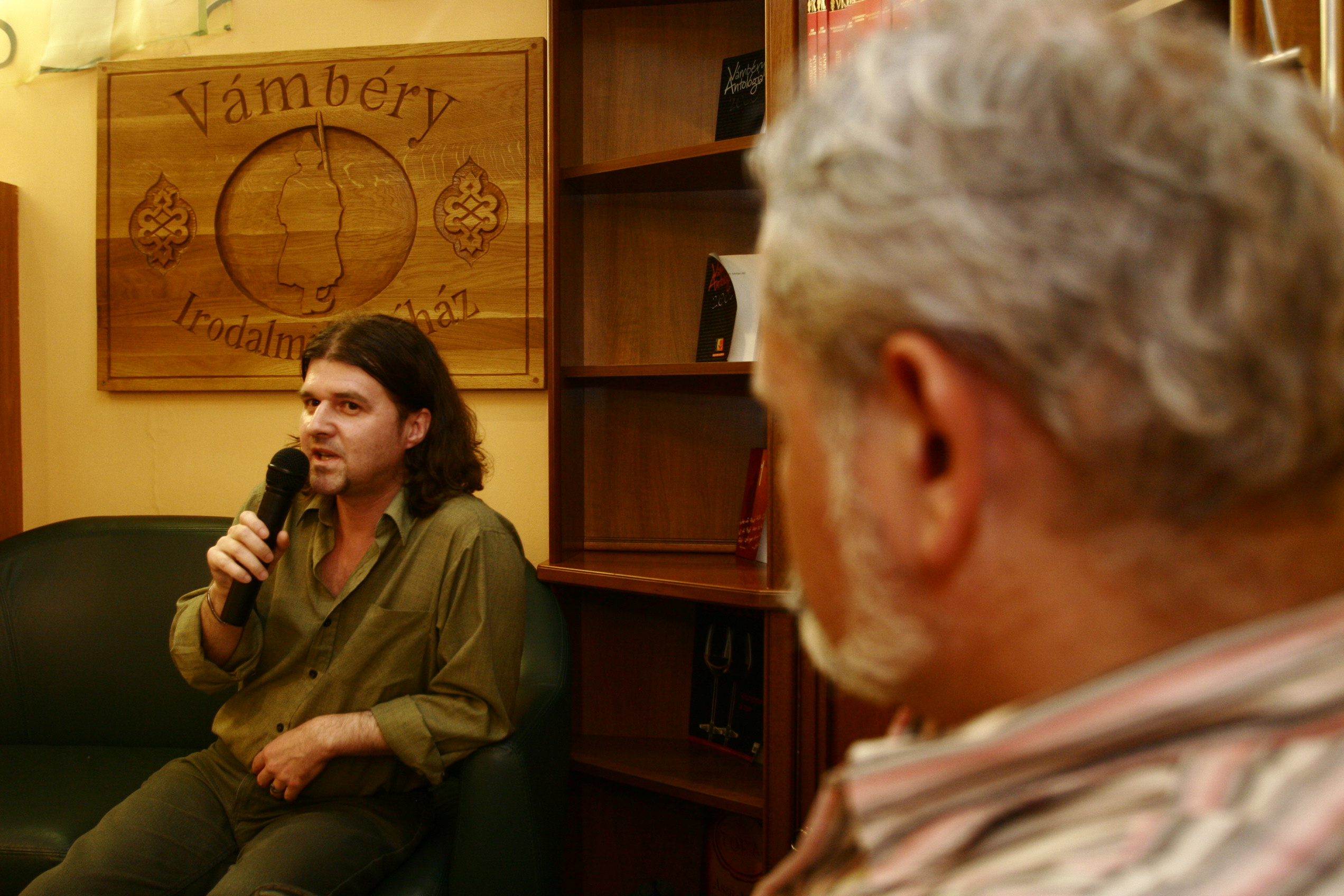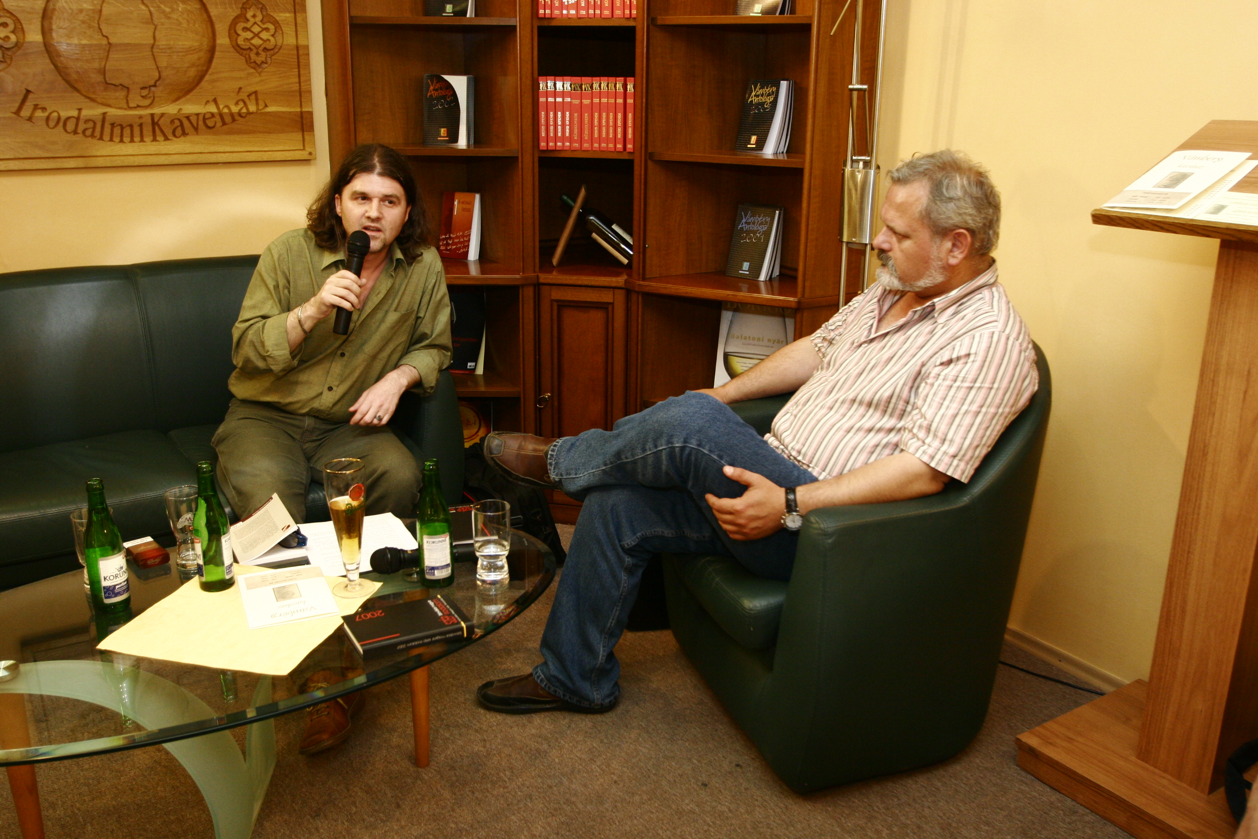 A Szlovákiai magyar szépirodalom 2007 című könyv bemutatója a Vámbéryben. A képen H. Nagy Péter és Hizsnyai Zoltán.