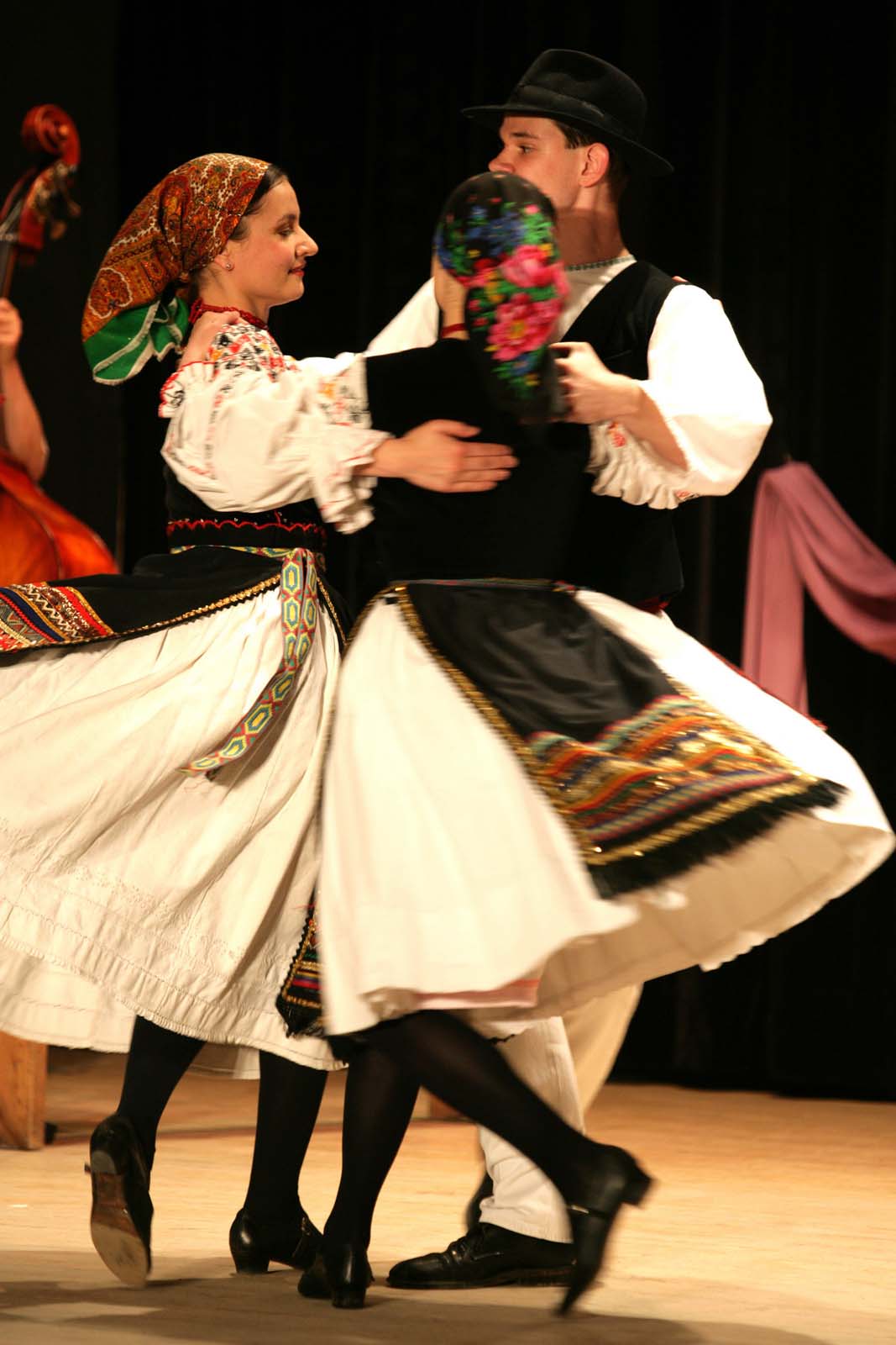 A Szőttes Kamara Néptáncegyüttes előadása Nádszegen: Pacalkai román táncok – Invirtita (a képen: Csernák Annamária, Ürge Mátyás, Práznovská Natália)