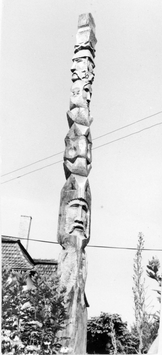 A táborban faragott emlékoszlop.