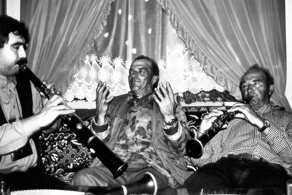 Agócs Gergely tárogatózik, Dobcsák János középen, Dobcsák Béla klarinétozik.