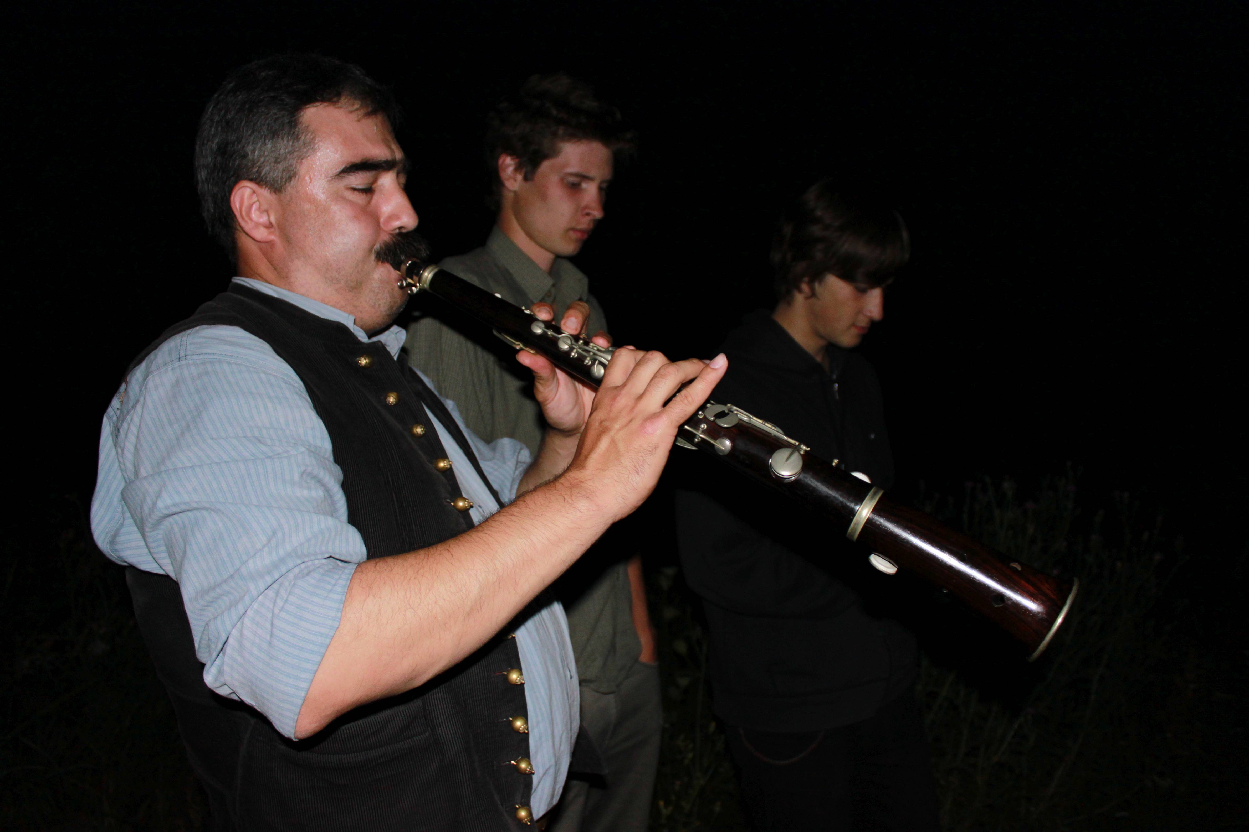 Agócs Gergely tárogatózik, Molnár Ábel, Agócs Márton.