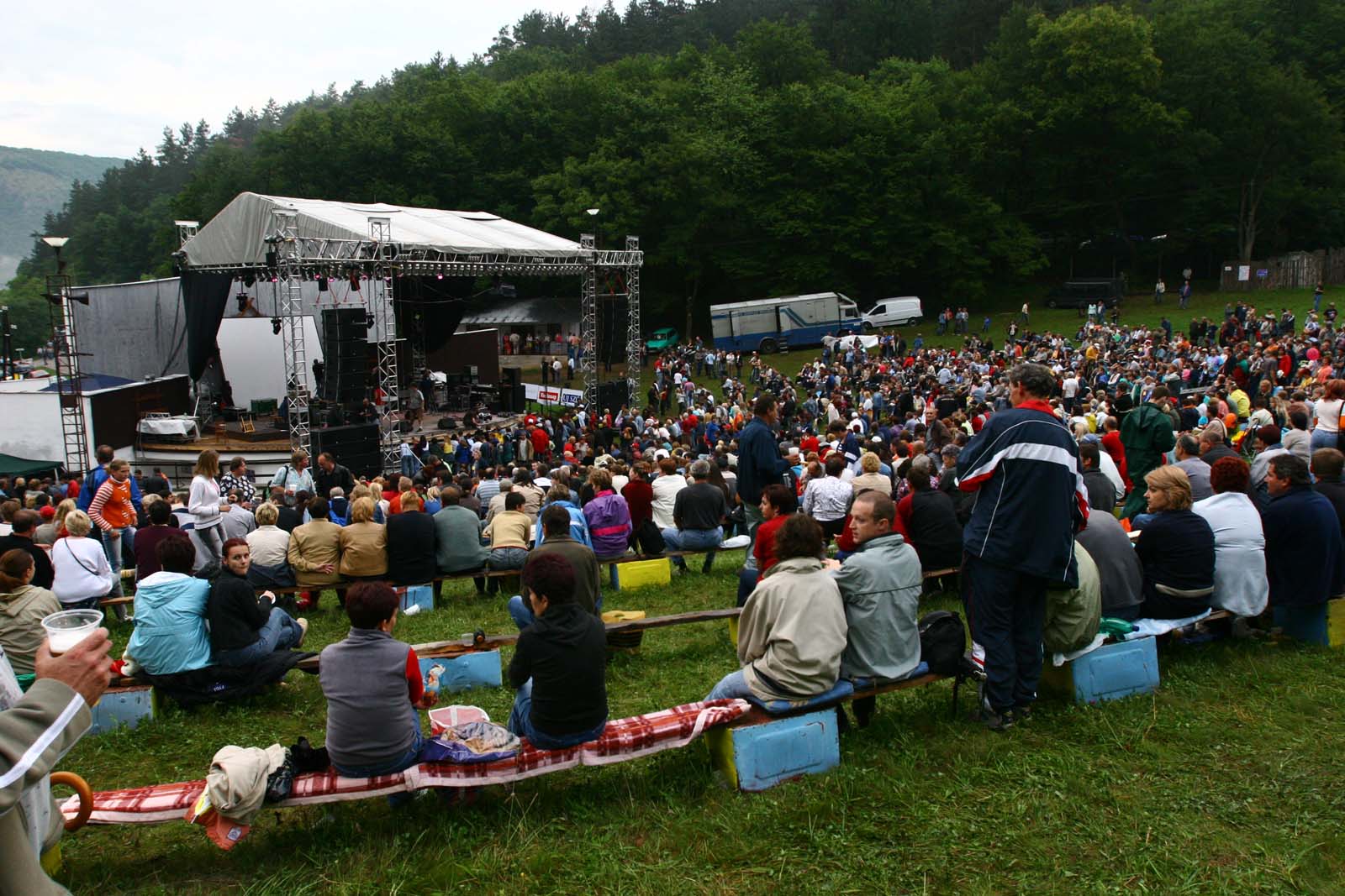Az esőben is kitartó közönség. (XLVII. Országos Kulturális Fesztivál)