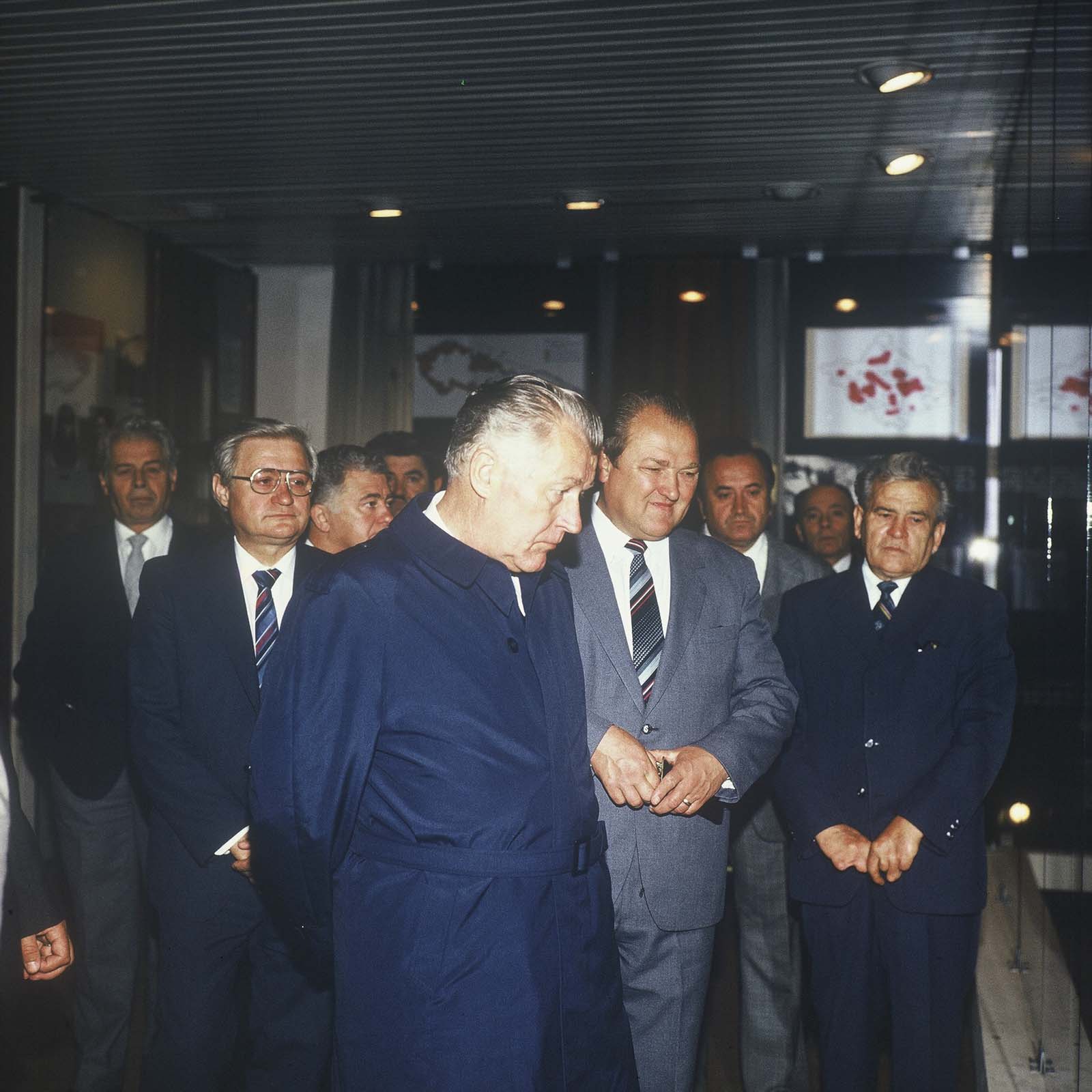 Az Országos Kulturális Ünnepség 30 éve című kiállítás megnyitása a Rozsnyói Bányász Múzeumban. (politikai küldöttség, balról az 1. Lukács József Csemadok titkár, 2. Peter Colotka az SzK Kormányának elnöke) (XXX. Országos Kulturális Ünnepély, Gombaszög)