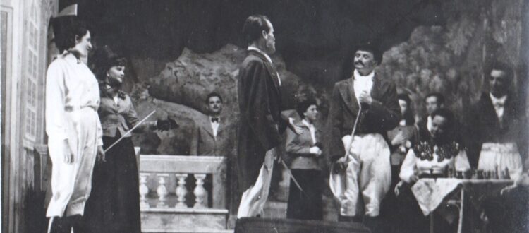 Balról elől: Tóth Erzsébet (Rolla), Kasza Kálmán (Baracs), Pulcner Zoltán (Miska, már gróf)