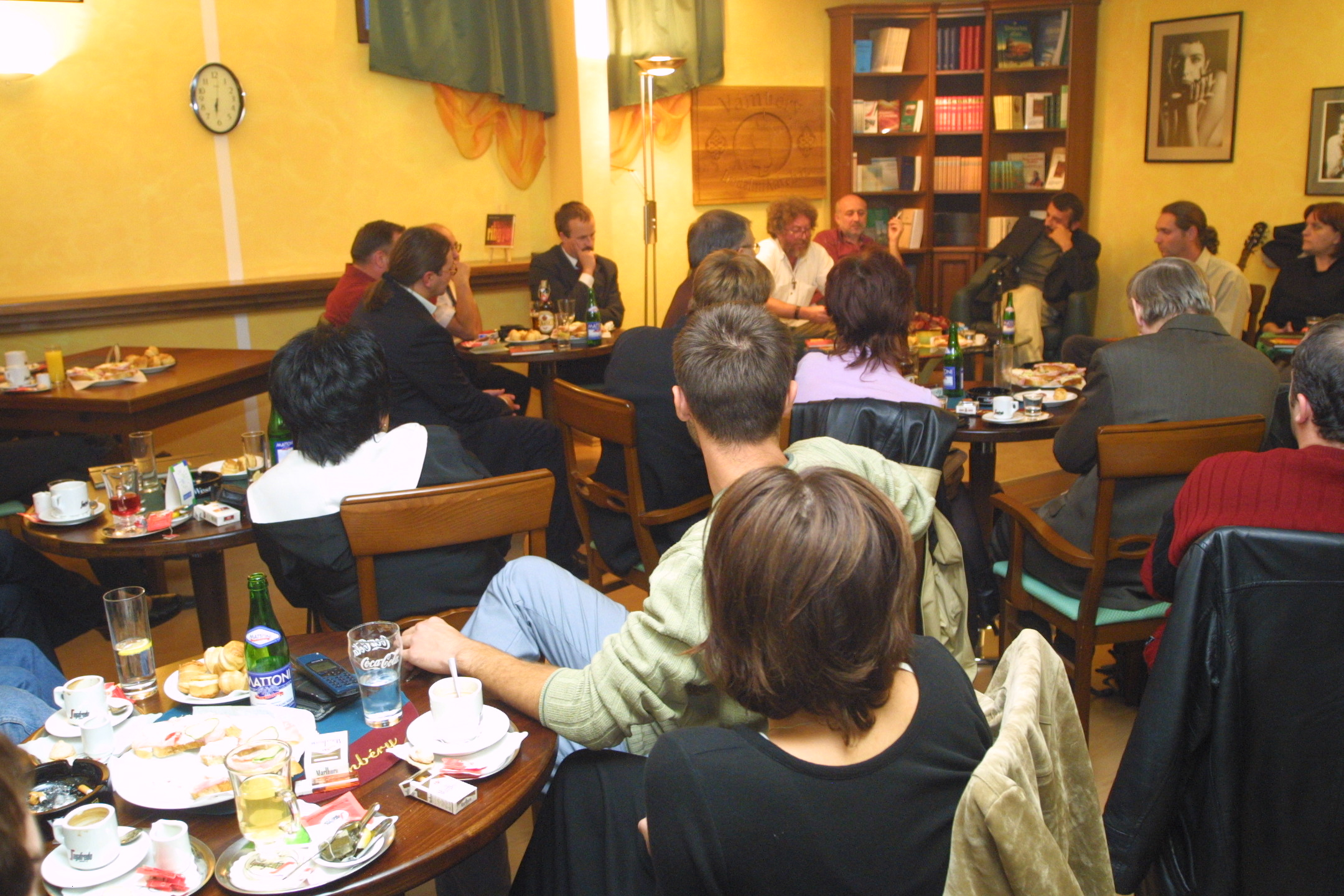 Barak László „És ha mégis ringyó?” című könyvének bemutatója a Vámbéryben. A képen Zalán Tibor, Barak László, Csanda Gábor és Zsapka Attila.
