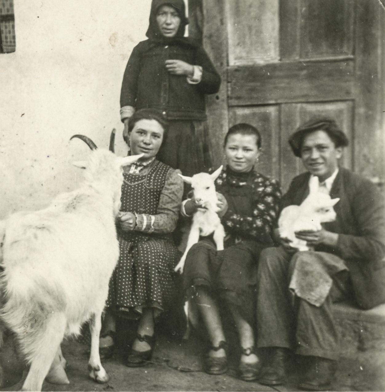 Csoportkép kecskével és gidáival a Gáspár-portán.