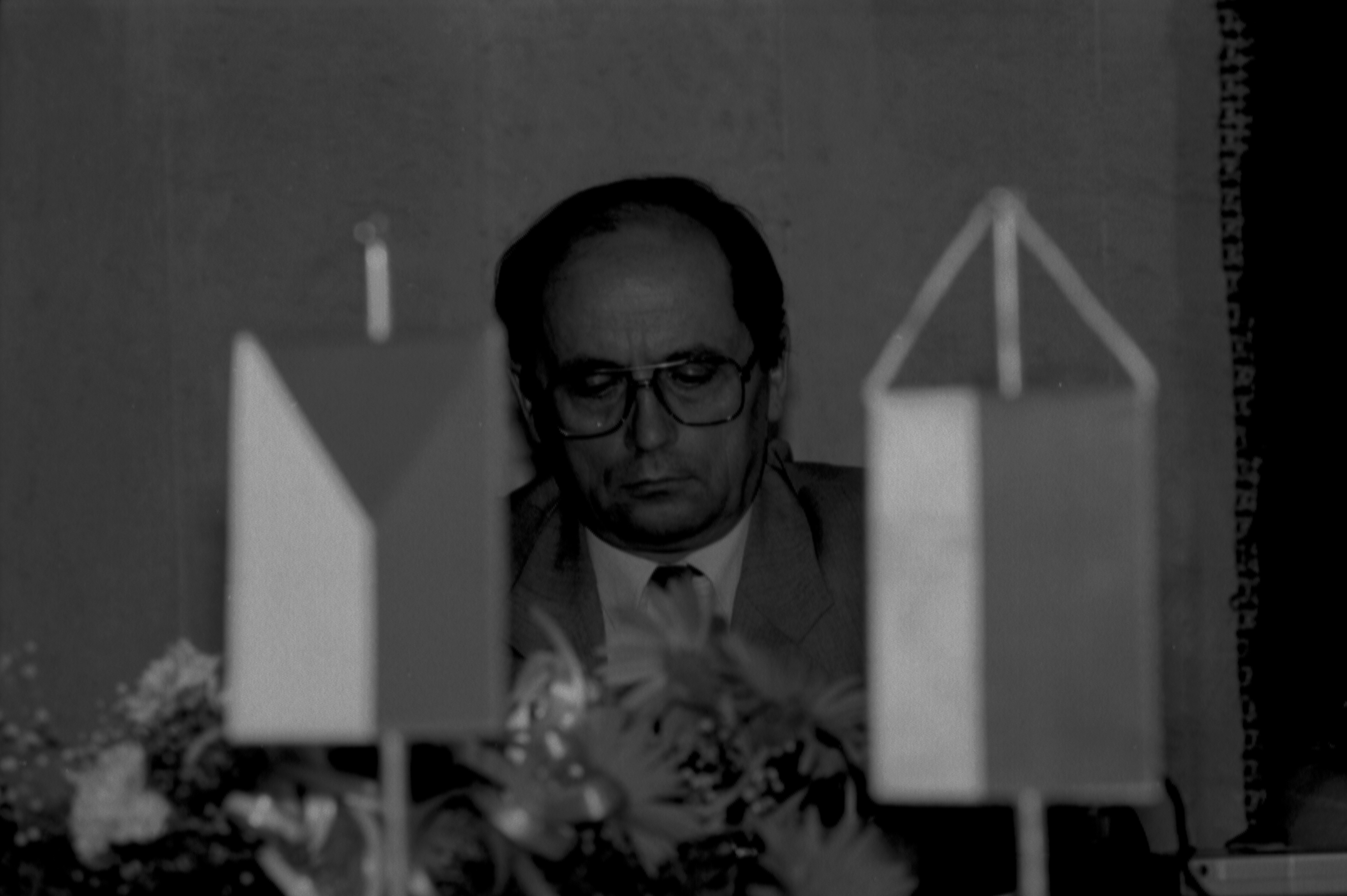 Demonstráció a bősi vízlépcső építése ellen. Ján Čarnogurský kormányfő.