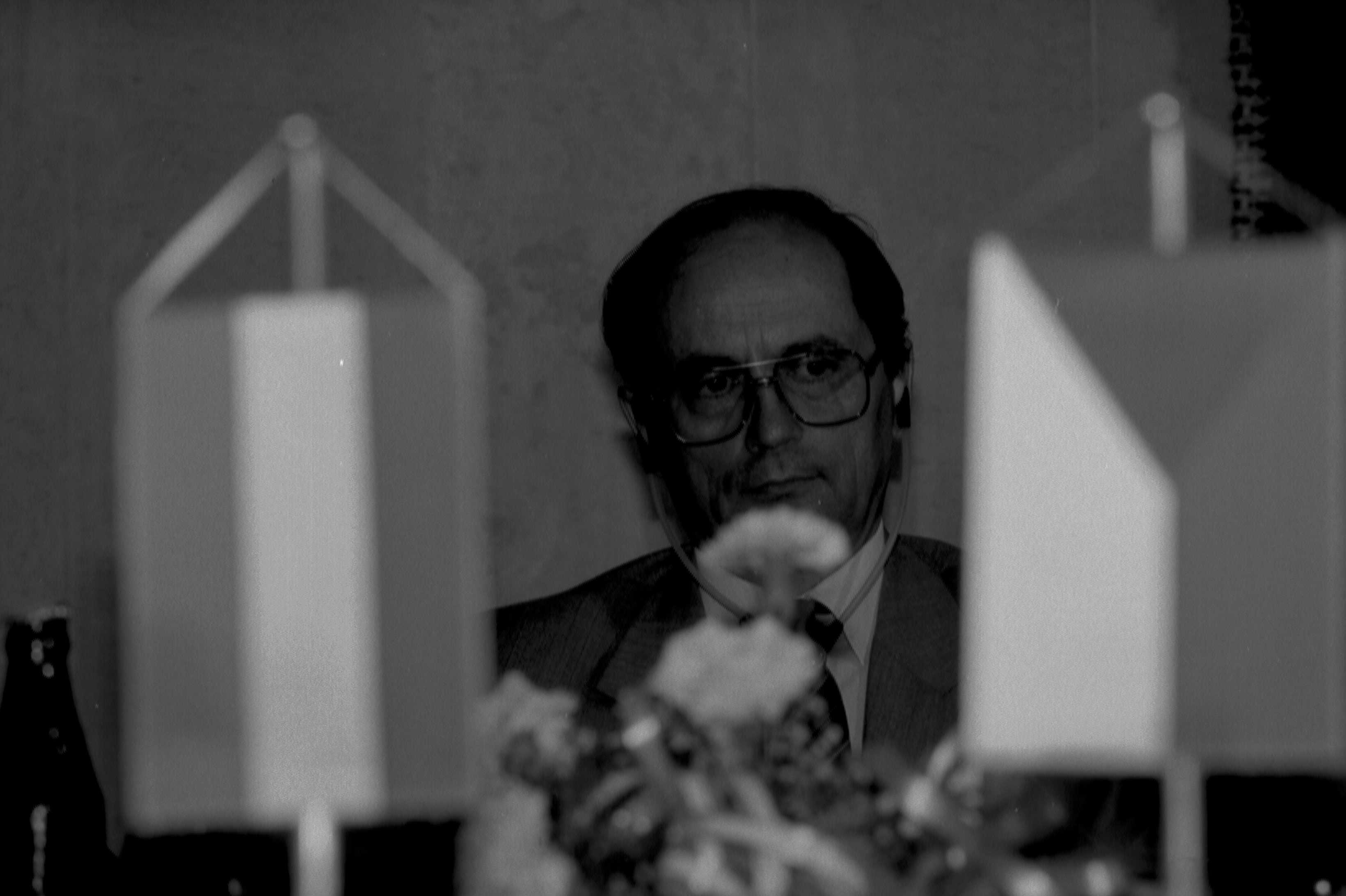 Demonstráció a bősi vízlépcső építése ellen. Ján Čarnogurský szlovák kormányfő.