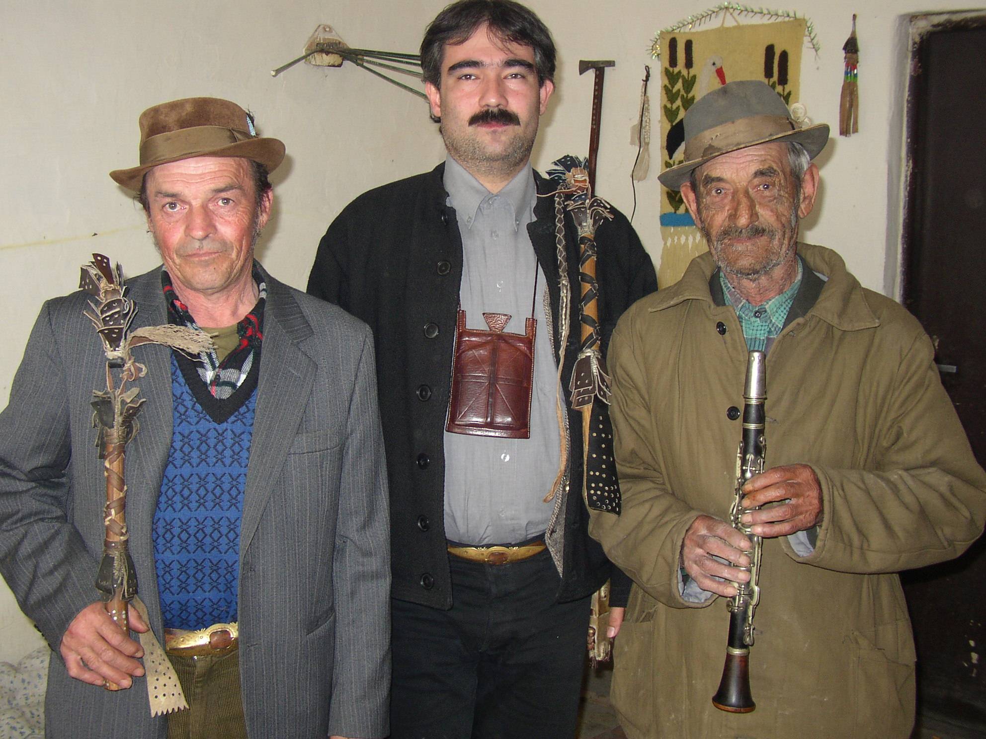 Dobcsák János vállán karikással, Agócs Gergely, Gatyás József klarinéttal.