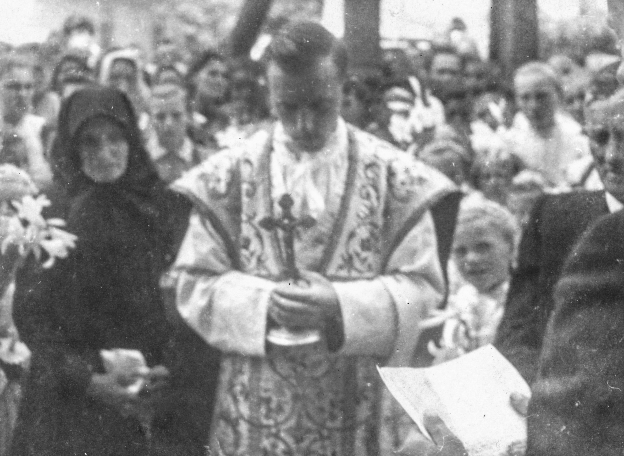 Dr. Elzer Ferenc elsőmiséje 1954-ben. Két oldalt szülei láthatók.