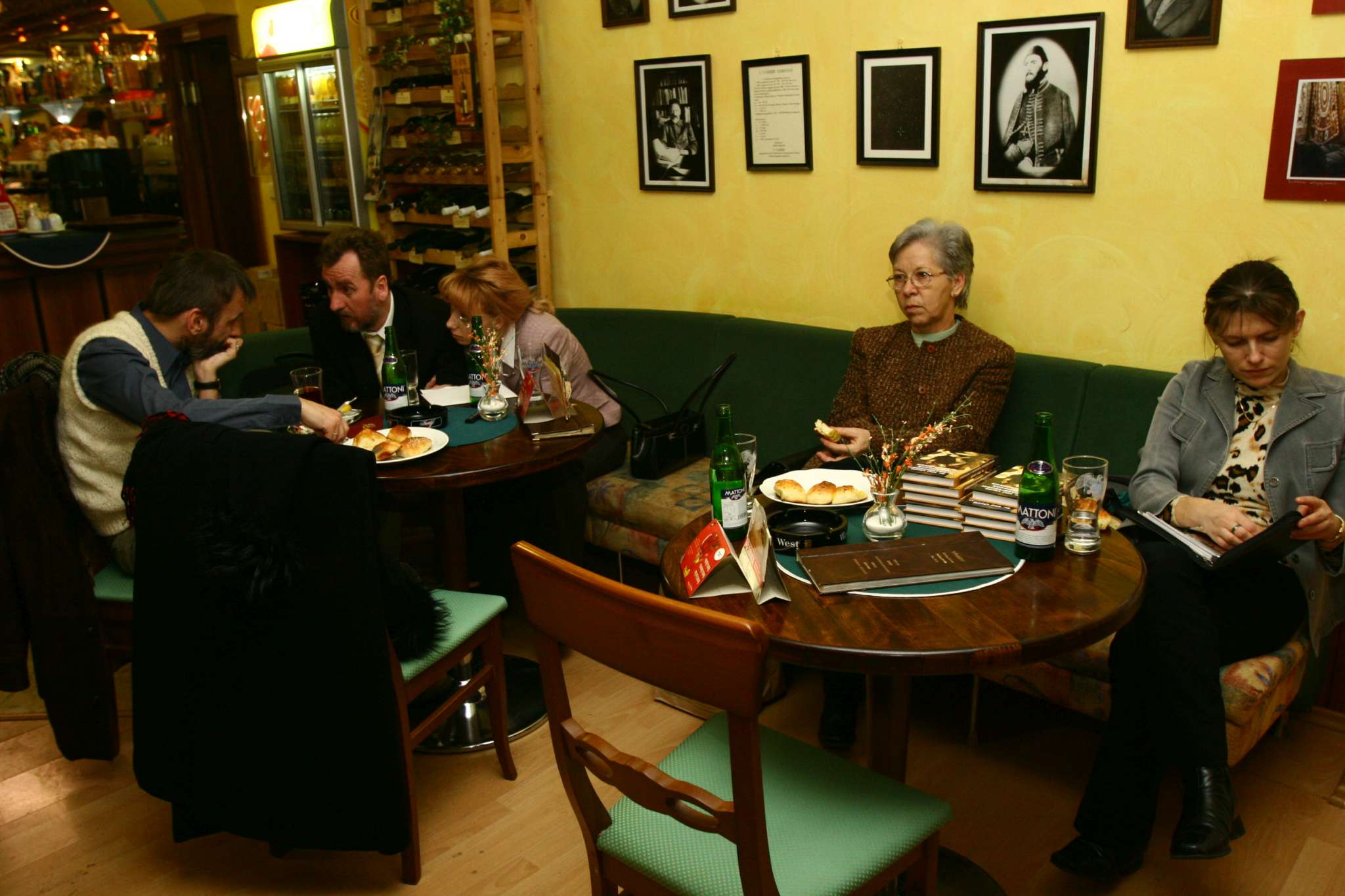 Dr.Kiss László Orvostörténeti helynevek a Felvidéken című könyvének bemutatója a Vámbéryben. A képen jobbról Csanda Gábor és Hodossy Gyula.