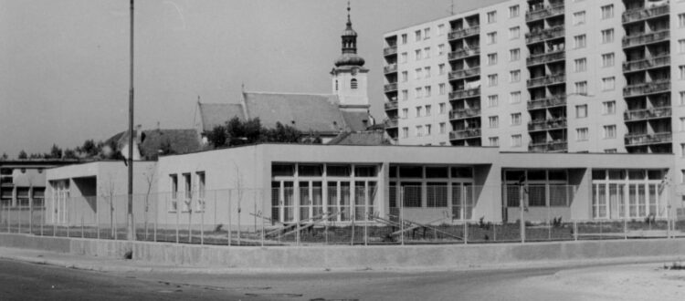 Előtérben az ovoda, bölcsőde, jobbról a városházával szemközti panelház